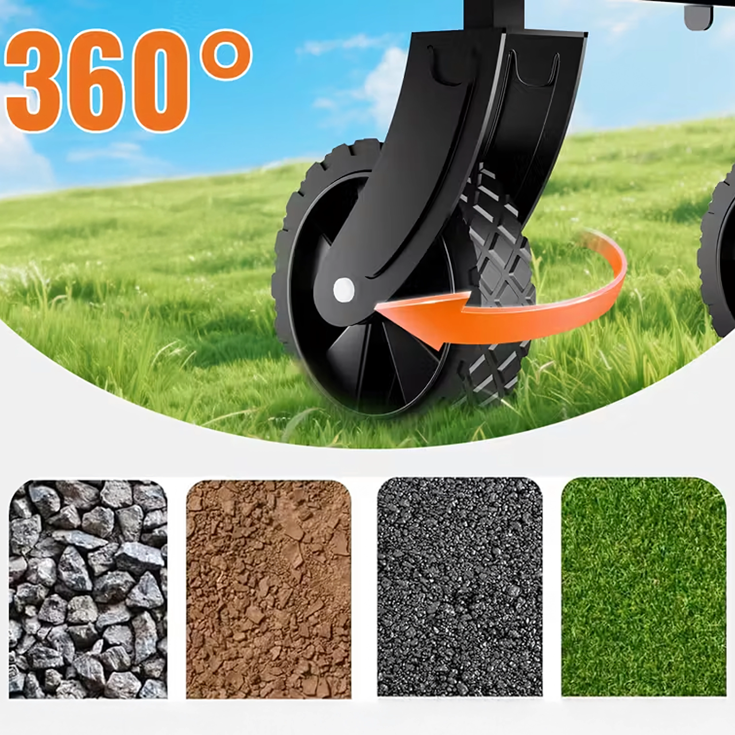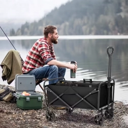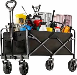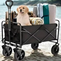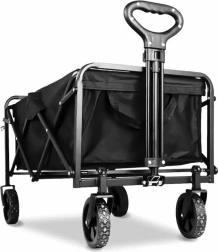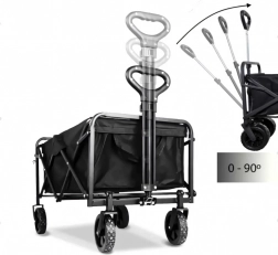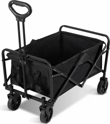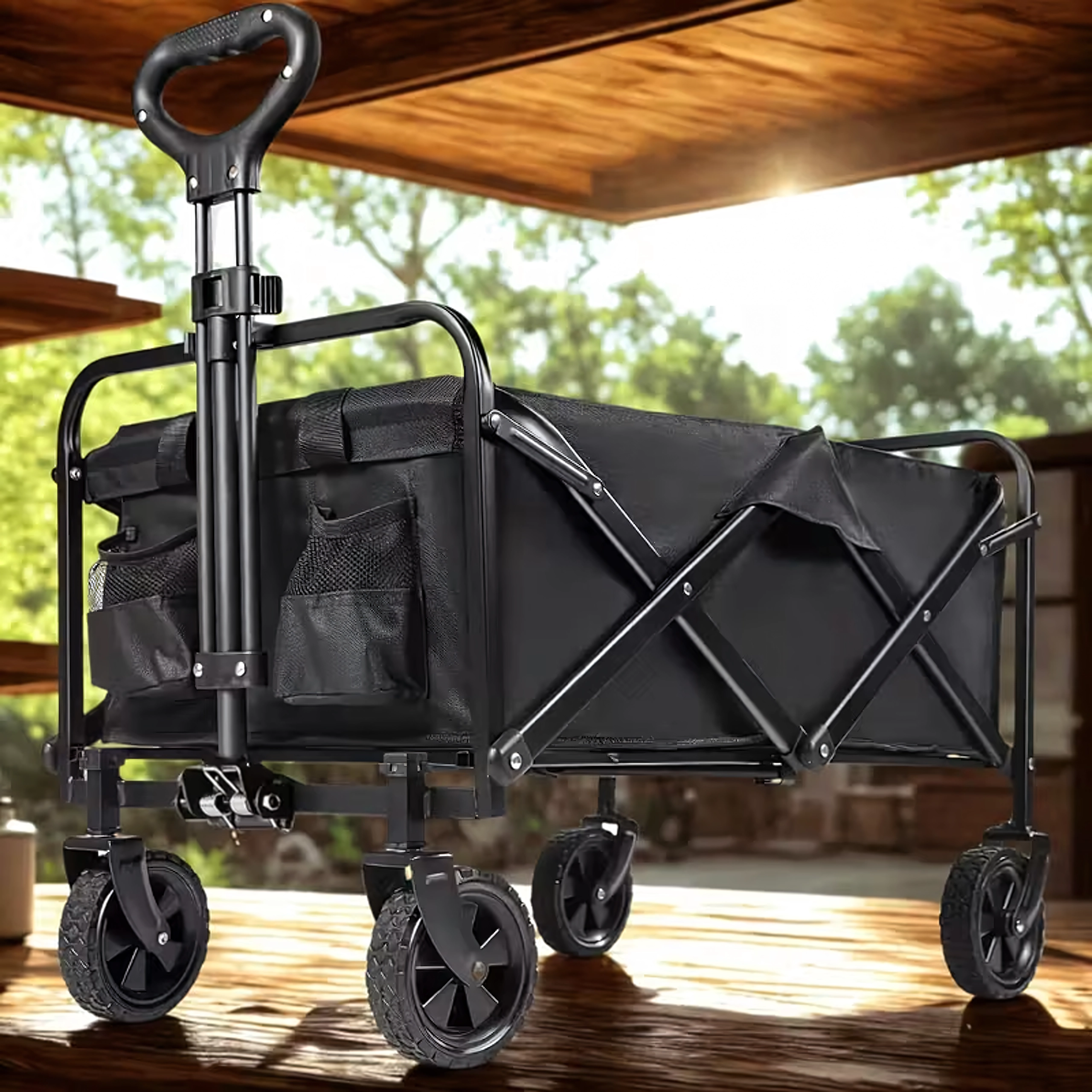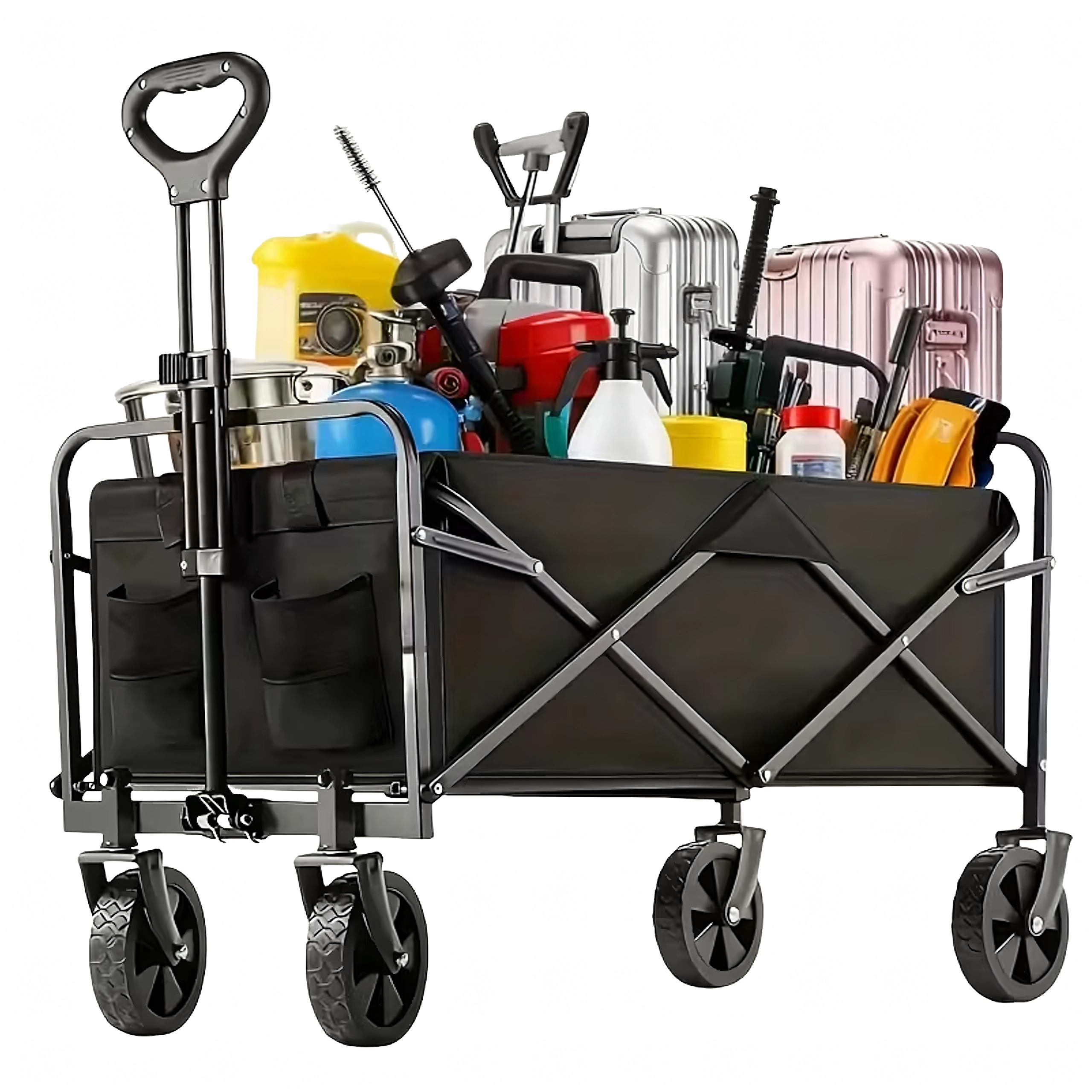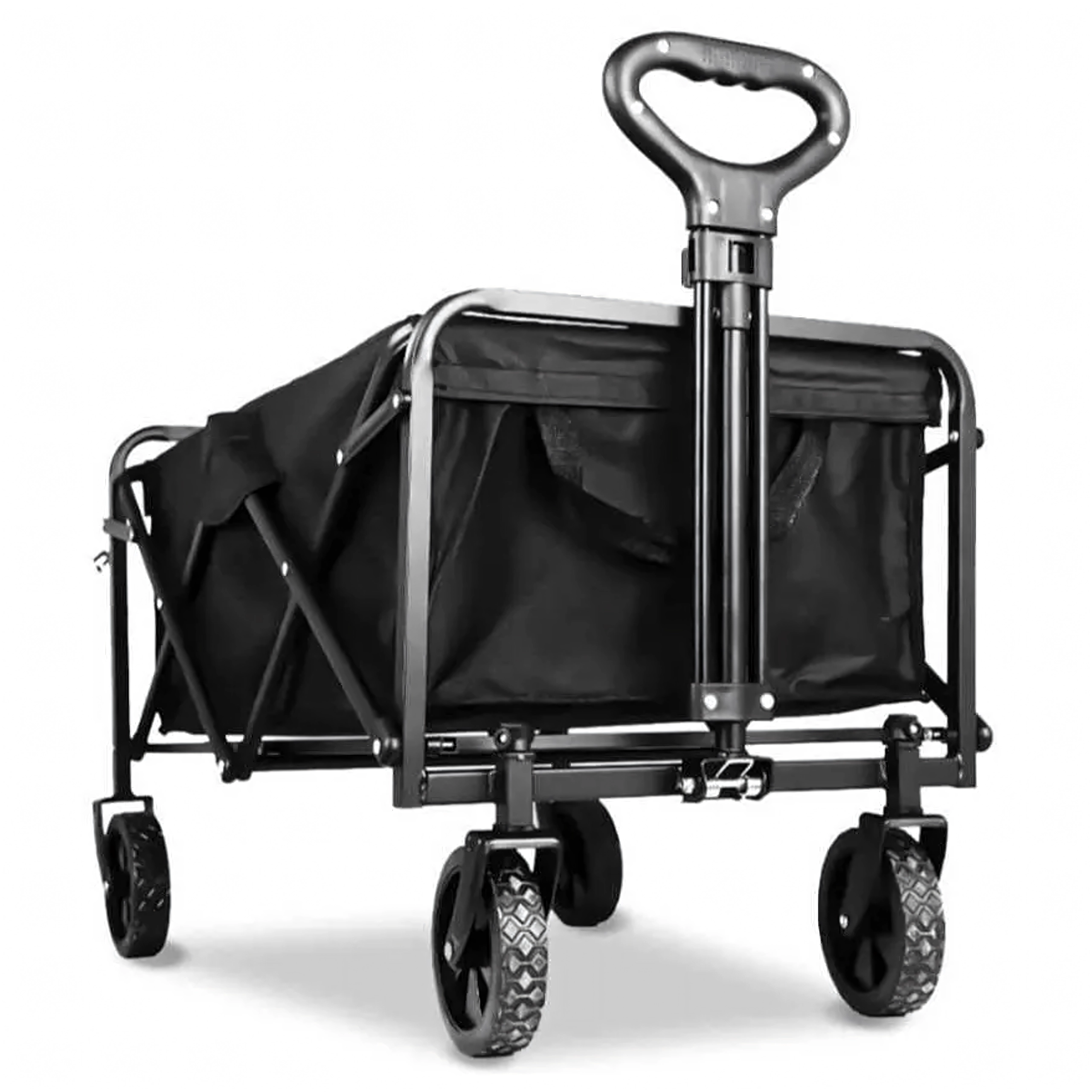 Praktischer, klappbarer Wagen mit robuster Stahlkonstruktion, wasserabweisendem Material und um 360° drehbaren Rädern – ideal für Strand, Garten, Camping und Einkäufe. Lässt sich leicht zusammenklappen, benötigt nur wenig Platz und transportiert zuverlässig Ihre Gegenstände sowie Brennholz.