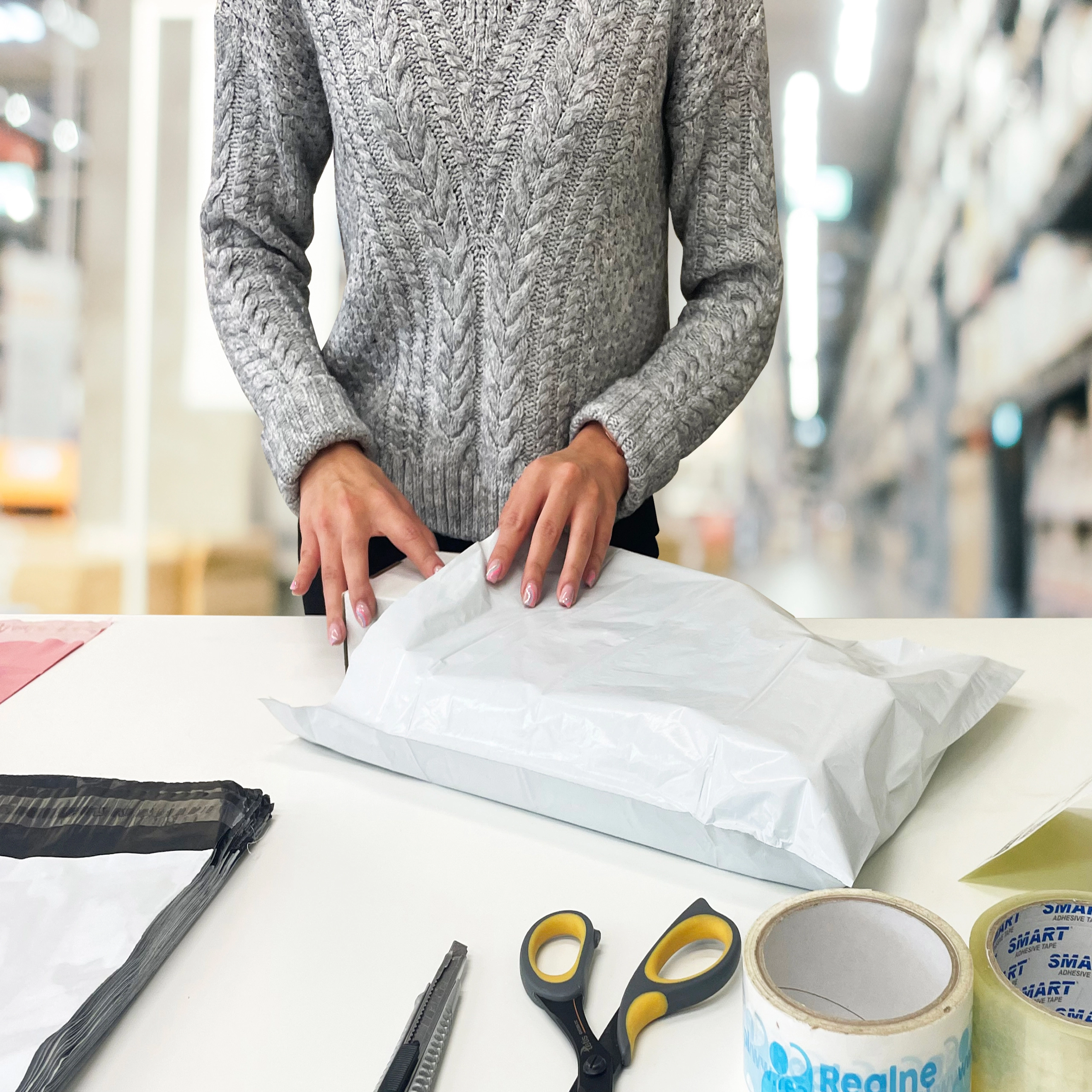 Das Poly-Material ist flexibel und widerstandsfähig gegen Einreißen und Feuchtigkeit – so kommt Ihre Ware unversehrt an.