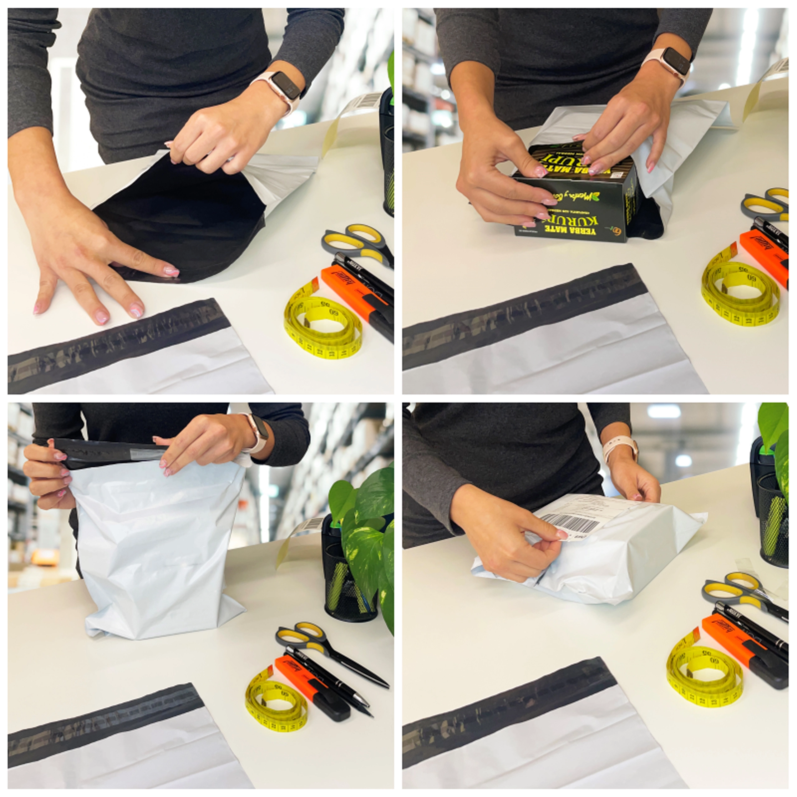 Diese weißen Poly-Mailer sind für den effizienten Versand von Produkten – von Textilien bis Accessoires – konzipiert. Der selbstklebende Streifen sorgt für ein schnelles und zuverlässiges Verschließen ohne zusätzliches Klebeband, während die dunkle Innenschicht Diskretionsschutz bietet.