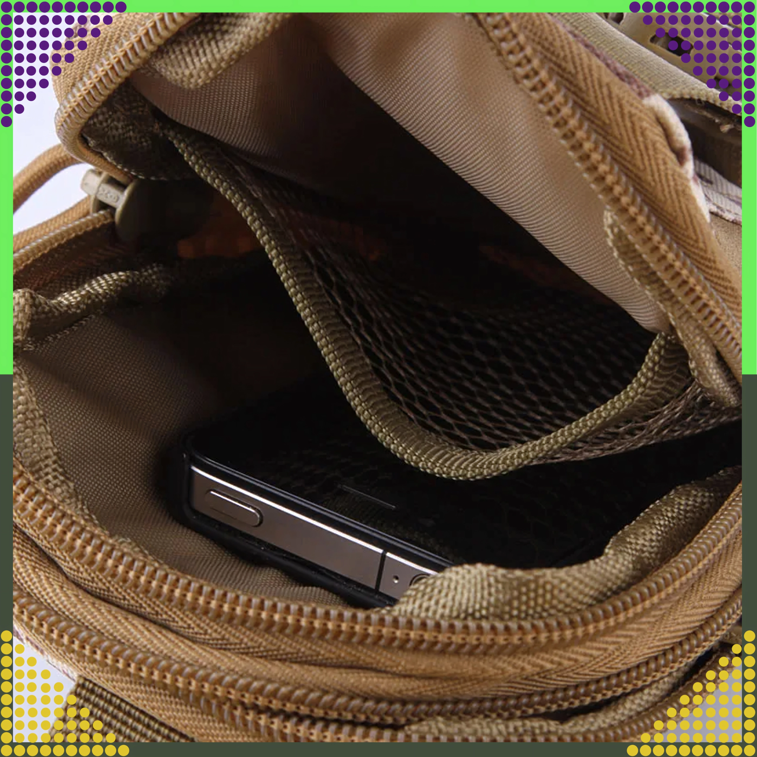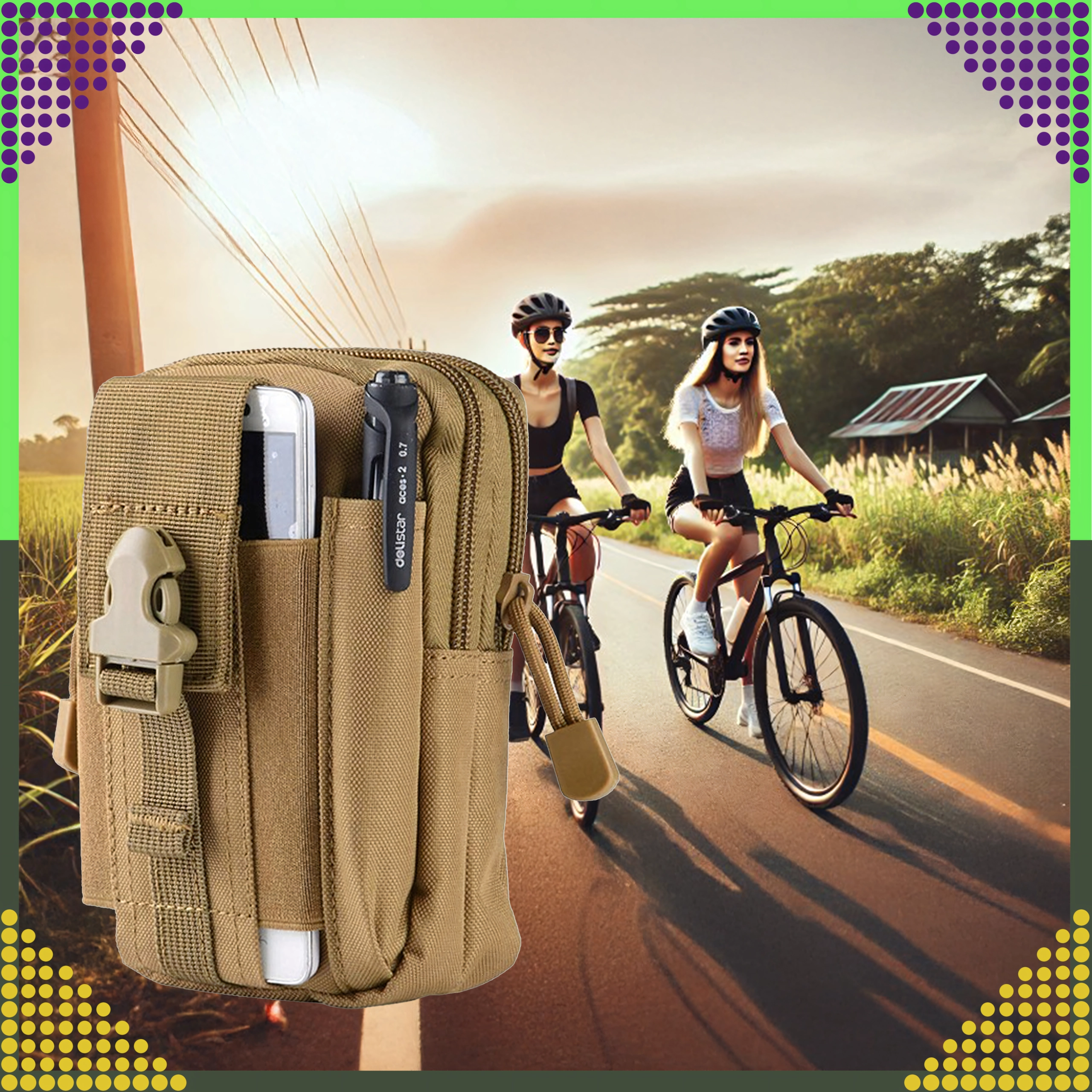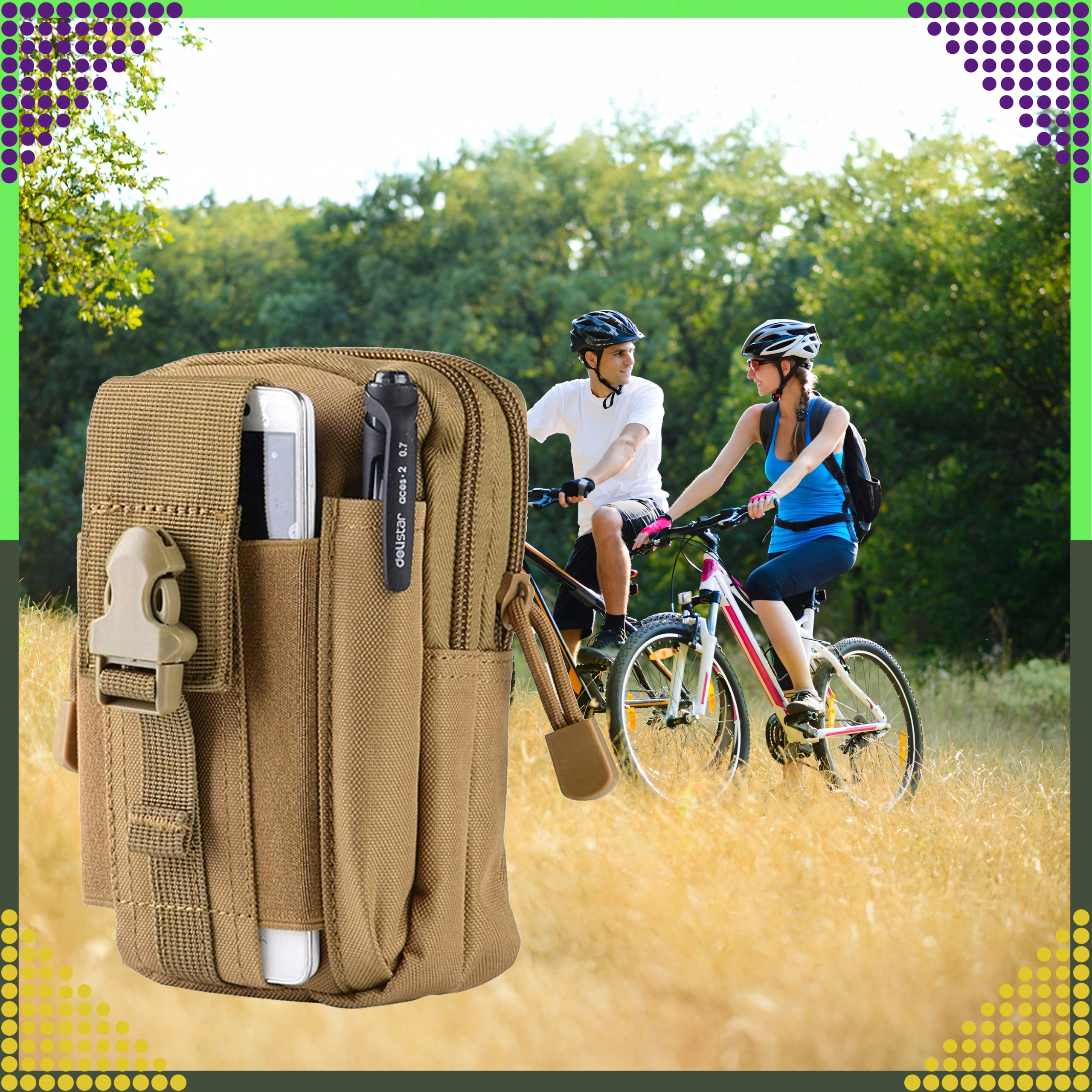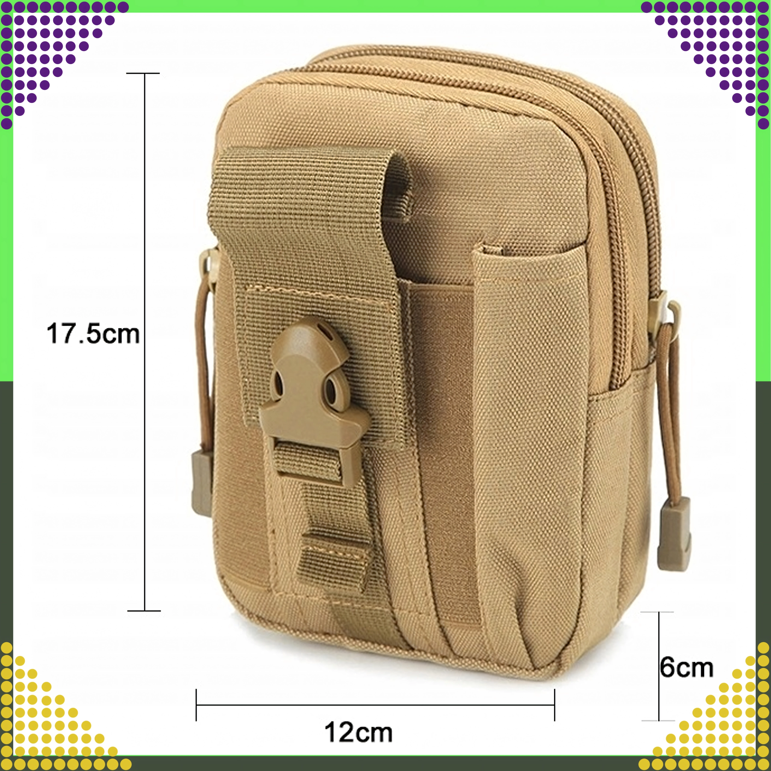 Dieser vielseitige Outdoor-Organizer in Braun hält Ihre Essentials übersichtlich und sicher griffbereit. Dank MOLLE-System lässt er sich einfach am Gürtel, Rucksack oder an taktischer Ausrüstung befestigen. Zwei geräumige Hauptfächer mit Reißverschluss, eine Fronttasche fürs Telefon und seitliche Schlaufen für Stift/Taschenlampe sorgen für schnellen Zugriff und hervorragende Organisation.