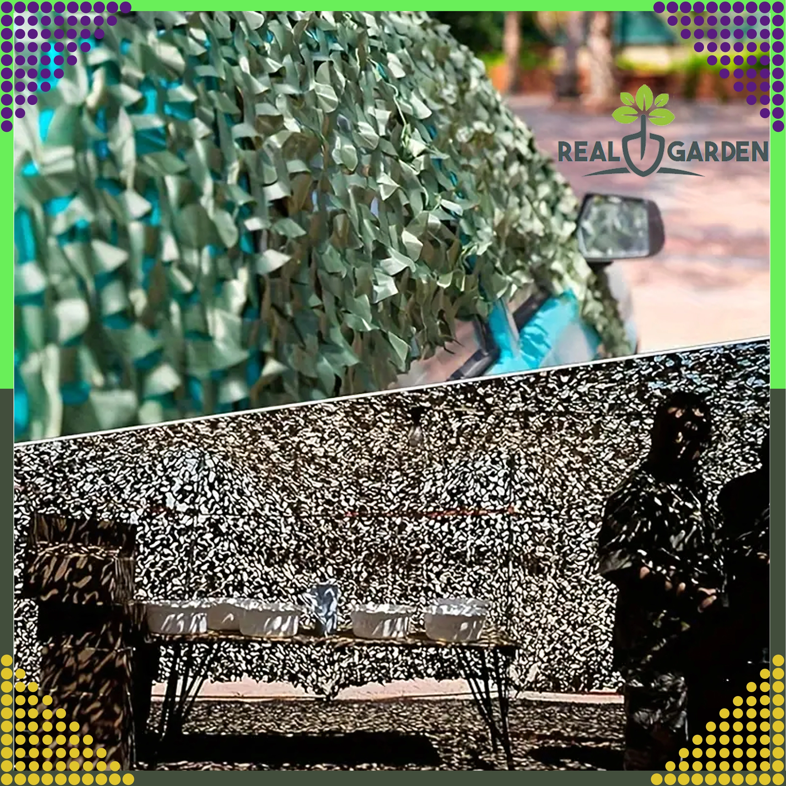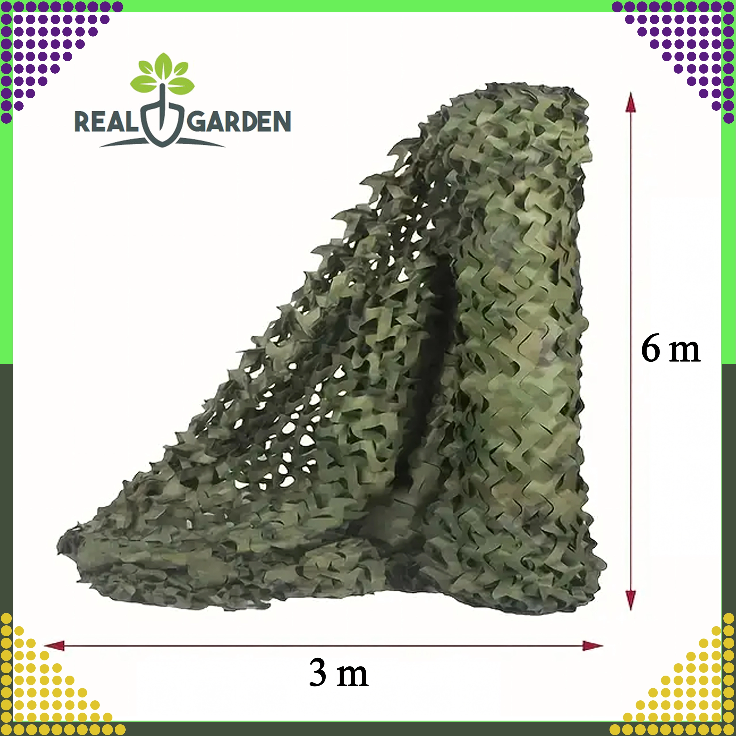 Verwenden Sie es als Schattierplane über Terrasse, Pergola oder Zelt, zur Camouflage bei Outdoor-Aktivitäten oder als dekoratives Element im Military-Look. Dank der Größe 3 × 6 m lässt sich problemlos eine größere Fläche abdecken und angenehmer Schatten schaffen.