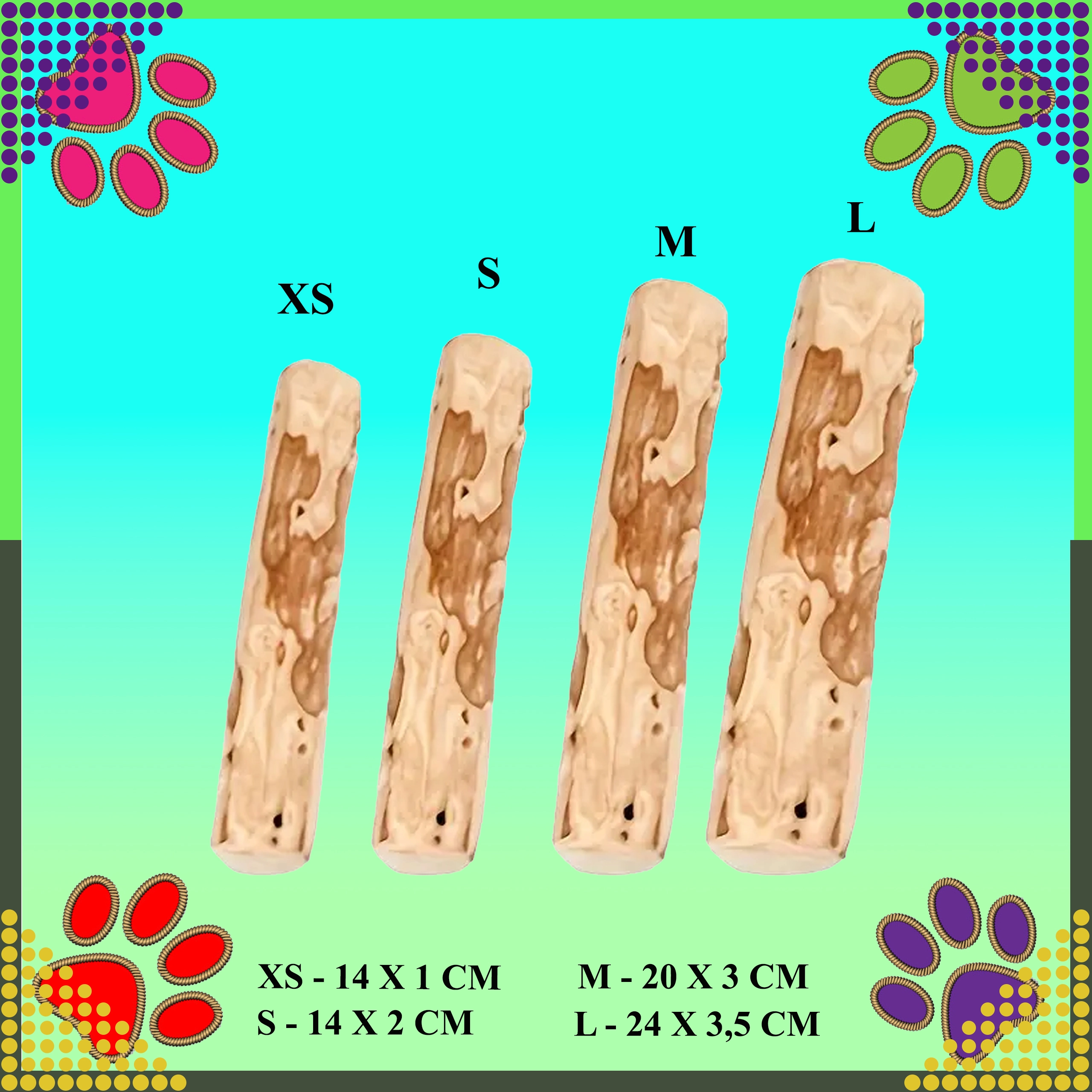 Suchen Sie eine sichere und natürliche Alternative zu Stöcken von draußen? Dieser Kau-Stick aus natürlichem Holz ist glatt verarbeitet, angenehm im Maul und für das tägliche Spiel geeignet. Er unterstützt die Mundhygiene durch sanfte mechanische Zahnreinigung und beschäftigt Ihren Hund beim Kauen und Apportieren drinnen wie draußen.