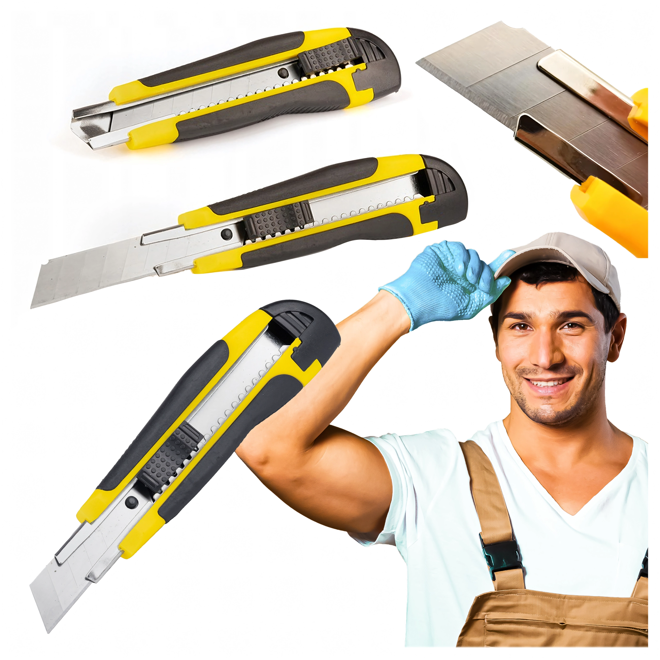 Ein zuverlässiges Universalmesser mit Abbrechklinge ist ein unverzichtbarer Helfer zum Schneiden in der Werkstatt, beim Modellbau und im Haushalt. Der Schiebemechanismus ermöglicht eine sichere und schnelle Einstellung der Klingenlänge sowie eine einfache Erneuerung durch Abbrechen eines Segments. Das Metallgehäuse mit Edelstahl-Führungsleiste bietet Stabilität und eine präzise Schnittführung.