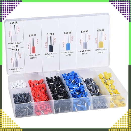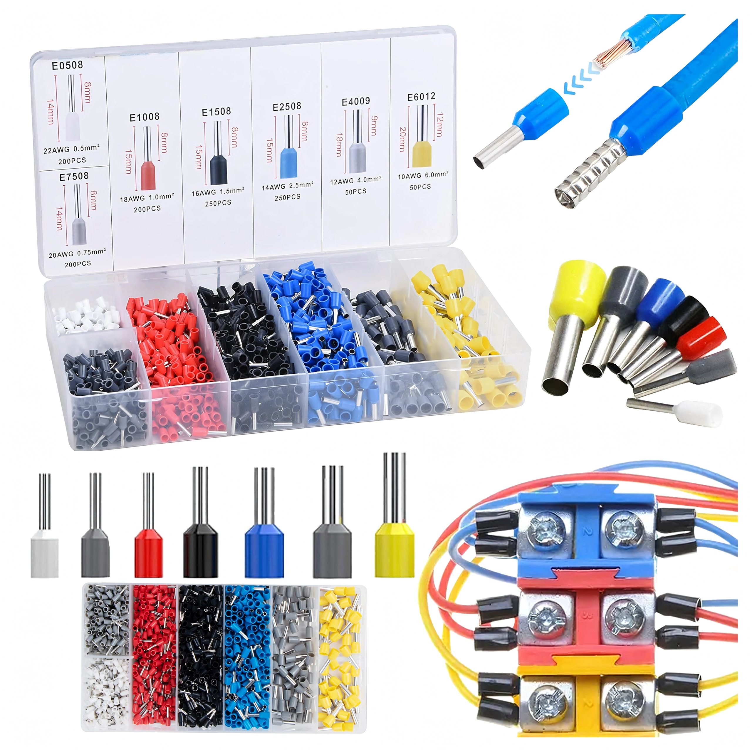 Im robusten Organizer finden Sie 1200 Stk. Hülsen in 7 gängigen Größen, übersichtlich in Fächern getrennt. Die Anwendung ist einfach: Nach dem Abisolieren des Leiterendes die Hülse aufsetzen und mit Crimpzange verpressen. Das so vorbereitete Leiterende hält zuverlässig in Schraubklemmen und gewährleistet einen stabilen elektrischen Kontakt.