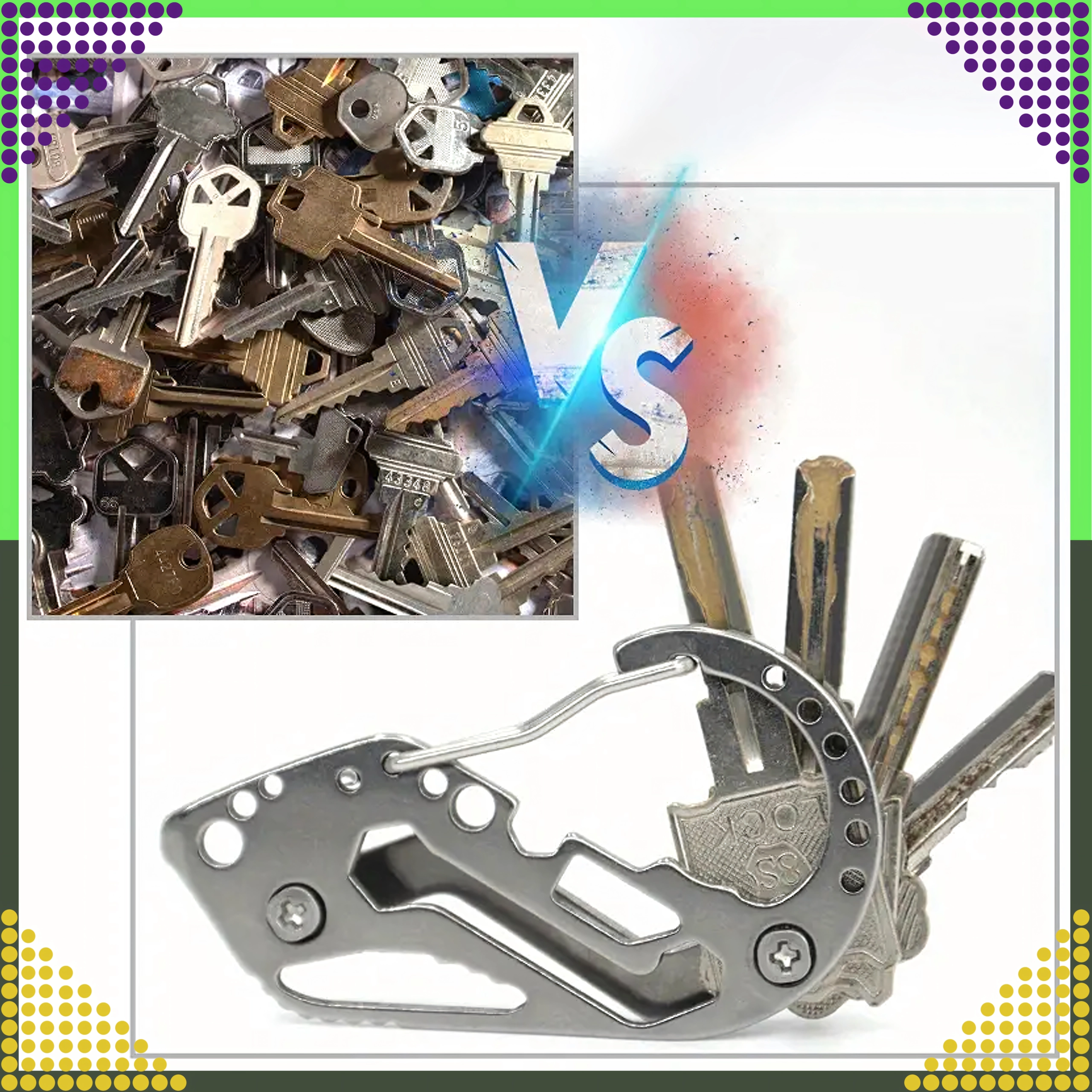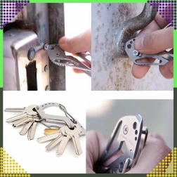 Behalten Sie Ihre Schlüssel stets übersichtlich zur Hand und erhalten Sie zugleich praktisches Werkzeug in einem. Dieses kompakte Multitool mit Karabiner aus Edelstahl bietet Platz für bis zu 8 Schlüssel und integrierte Werkzeuge wie einen Schraubendreher, Flaschenöffner und Mehrgrößen-Schlüssel. Robuste Konstruktion, schnelles Anklipsen an Gürtel oder Rucksack und universeller Einsatz im Alltag und Outdoor.