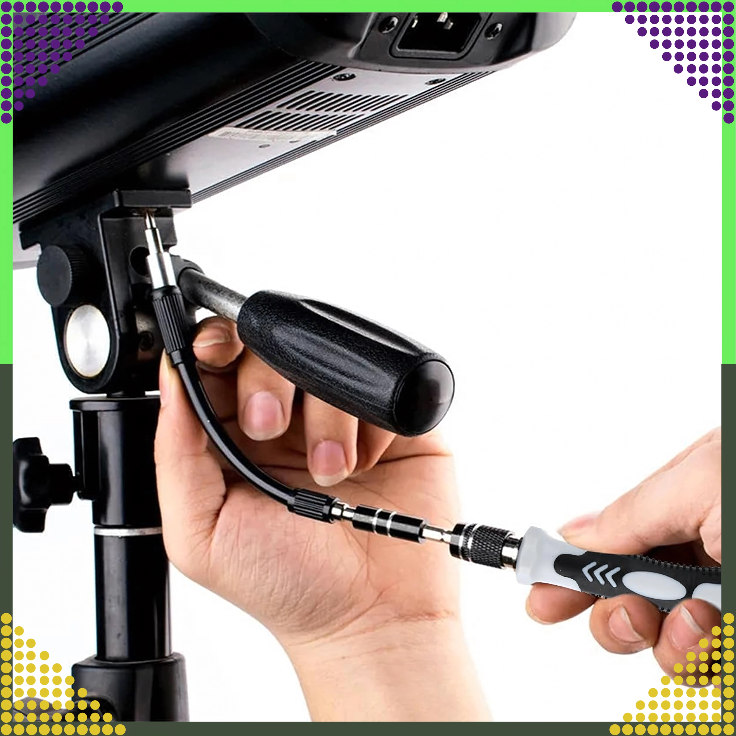 Der flexible Aufsatz ermöglicht das Anziehen oder Lösen von Schrauben dort, wo ein normaler Schraubendreher nicht hinkommt – im Inneren von Gehäusen, bei Lüftern oder in Geräte-Ecken.