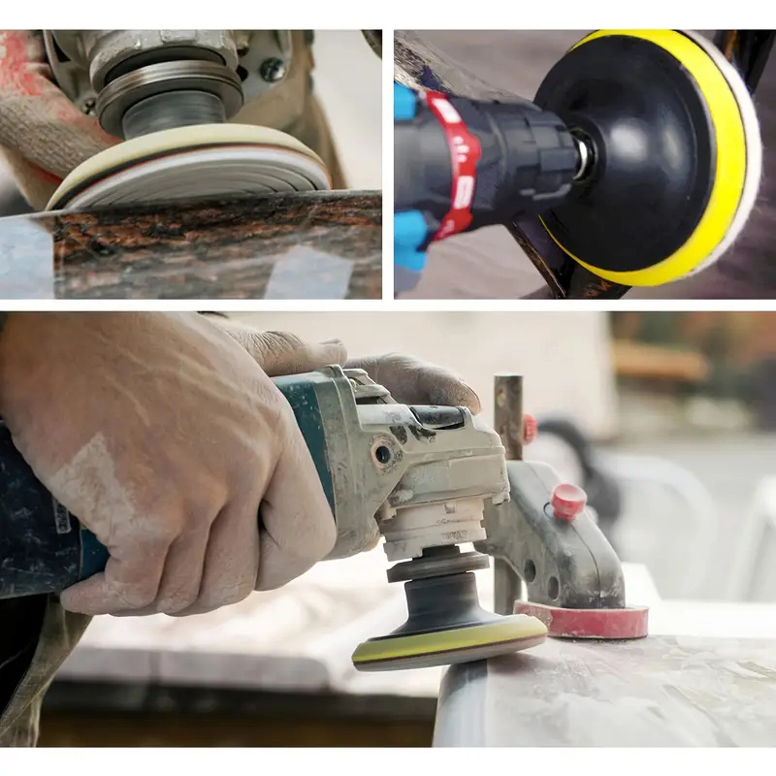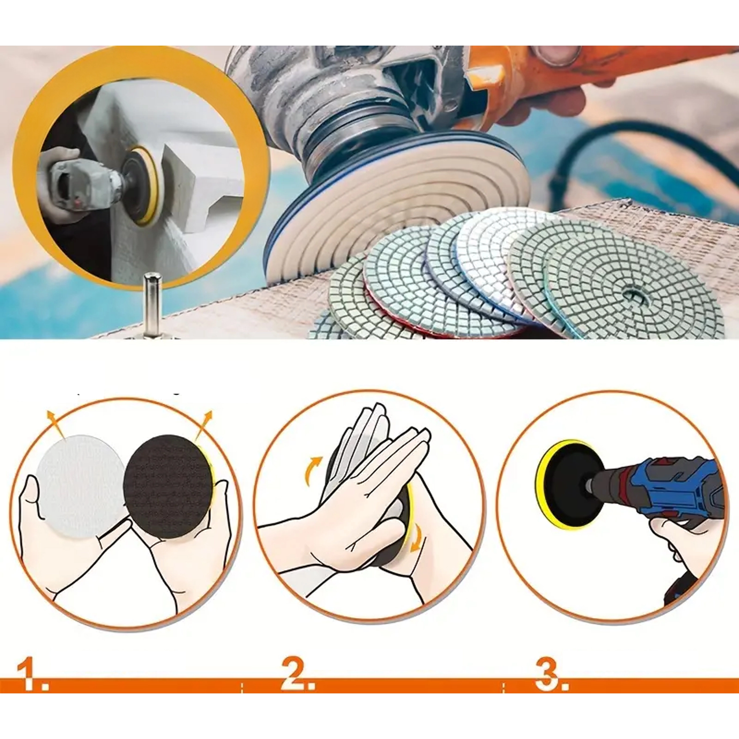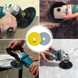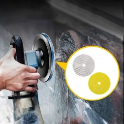 Dank Klettaufnahme lassen sich die Scheiben leicht auf den Stützteller aufsetzen und in Sekunden wechseln. Geeignet für den Einsatz mit Winkelschleifer oder Poliermaschine und für Arbeiten nass wie trocken, je nach Materialanforderung.