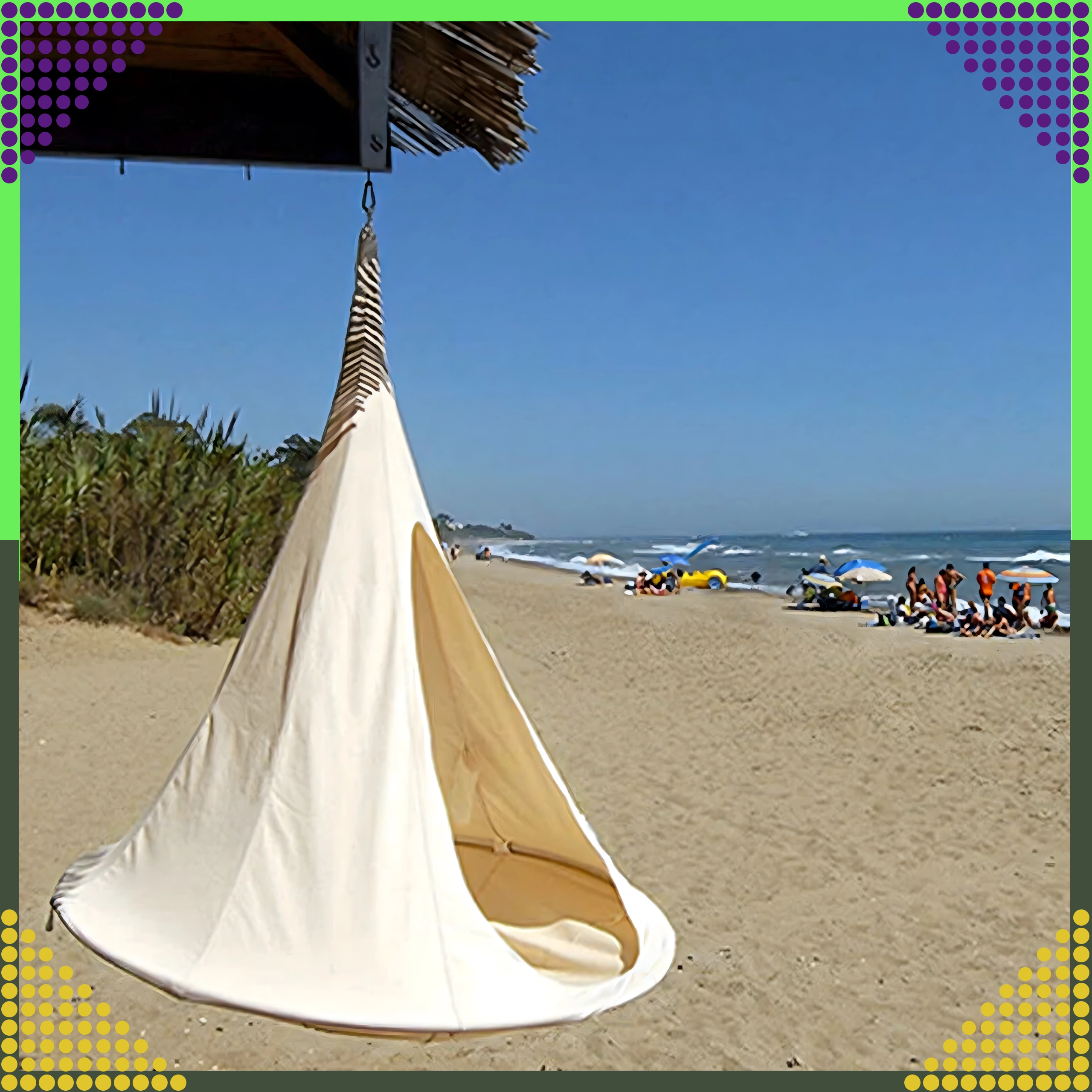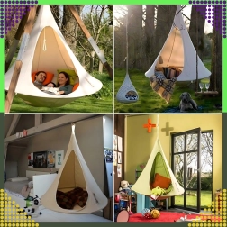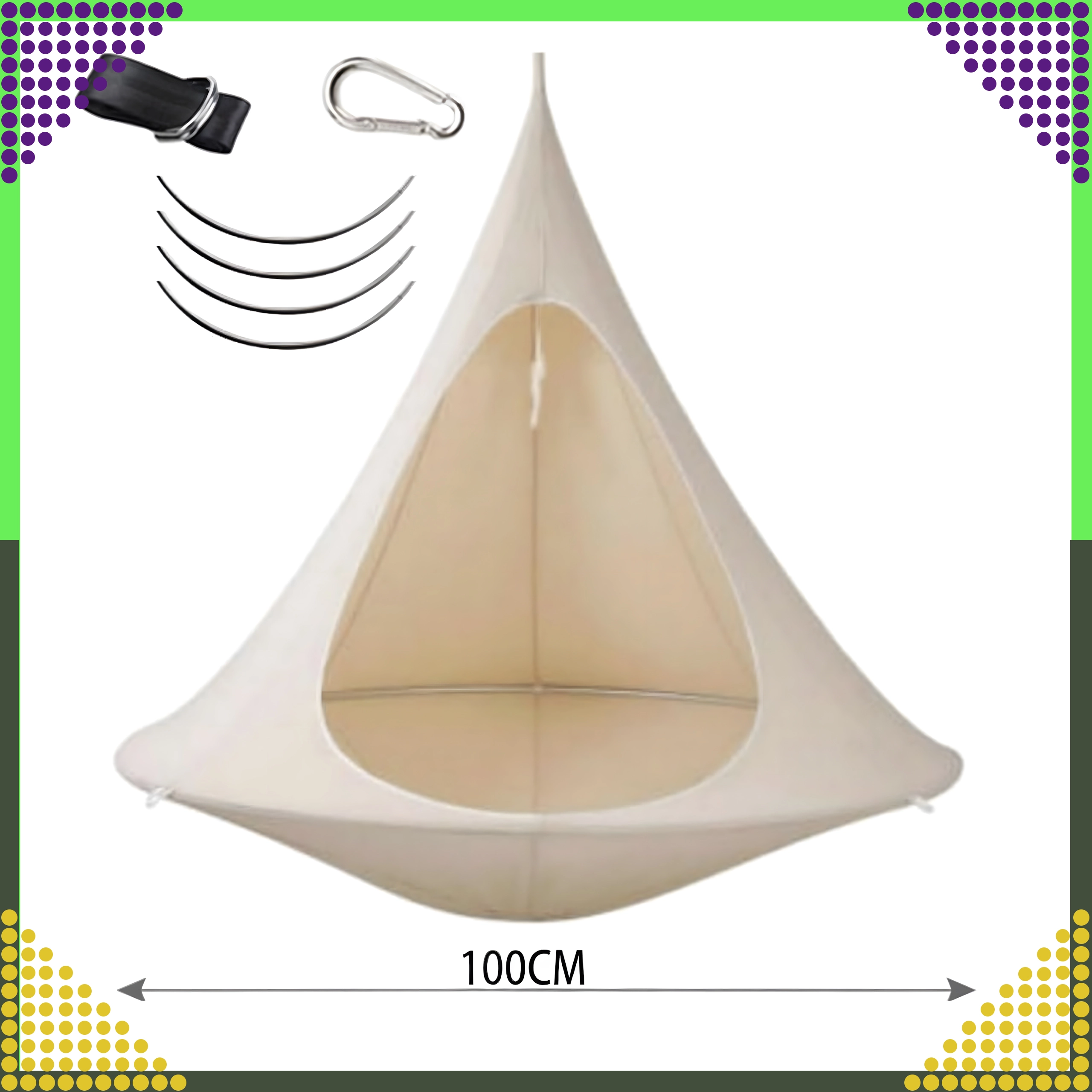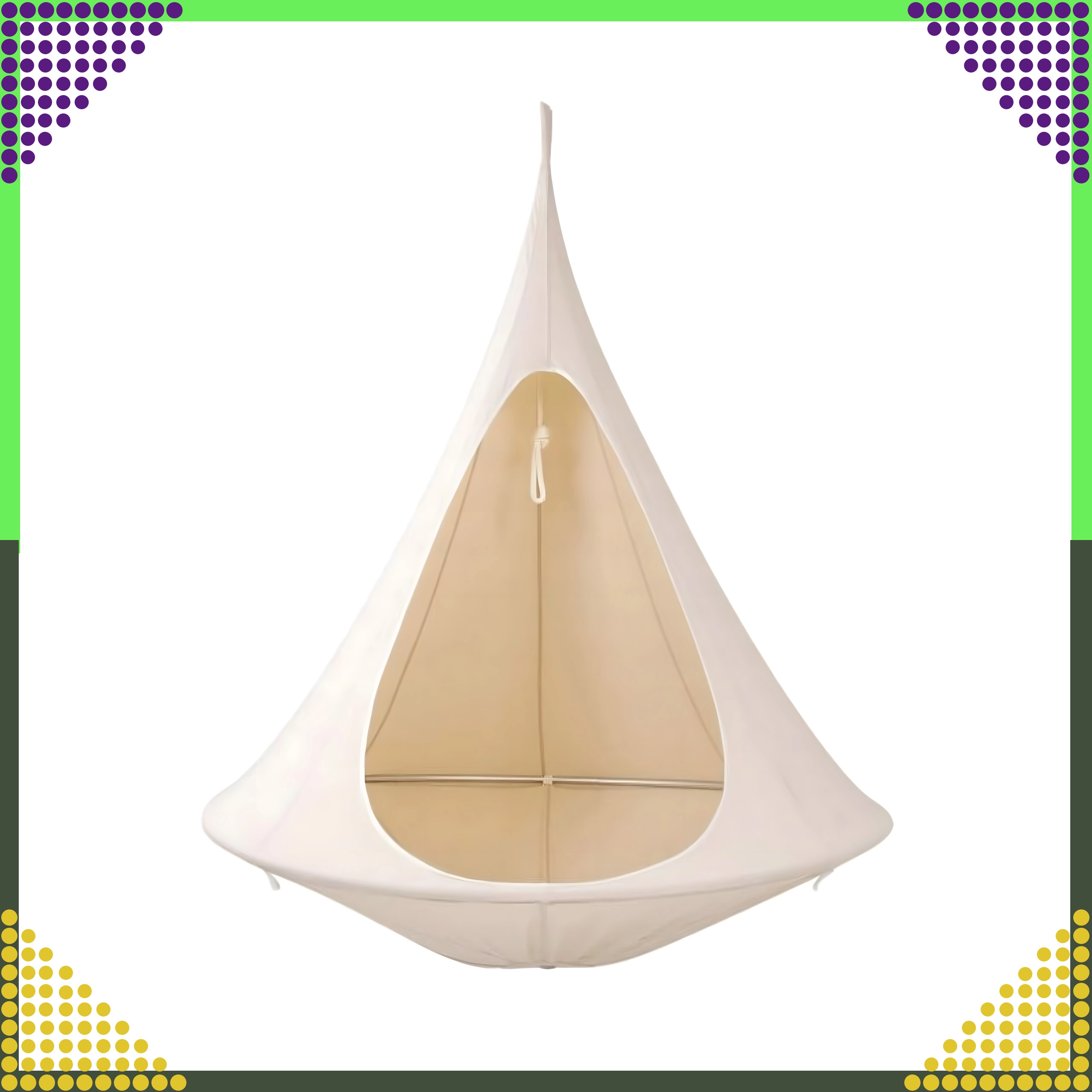 Der hängende Kokon-Hamak bietet einen angenehmen, sicheren und ruhigen Rückzugsort zum Lesen, Relaxen oder für ein Nickerchen. Dank des atmungsaktiven Materials und der robusten Aufhängung an einem Punkt ist er ideal fürs Kinderzimmer, Wohnzimmer oder für den Garten unter einem Baum. Die beige Farbe lässt sich leicht mit jedem Stil kombinieren.