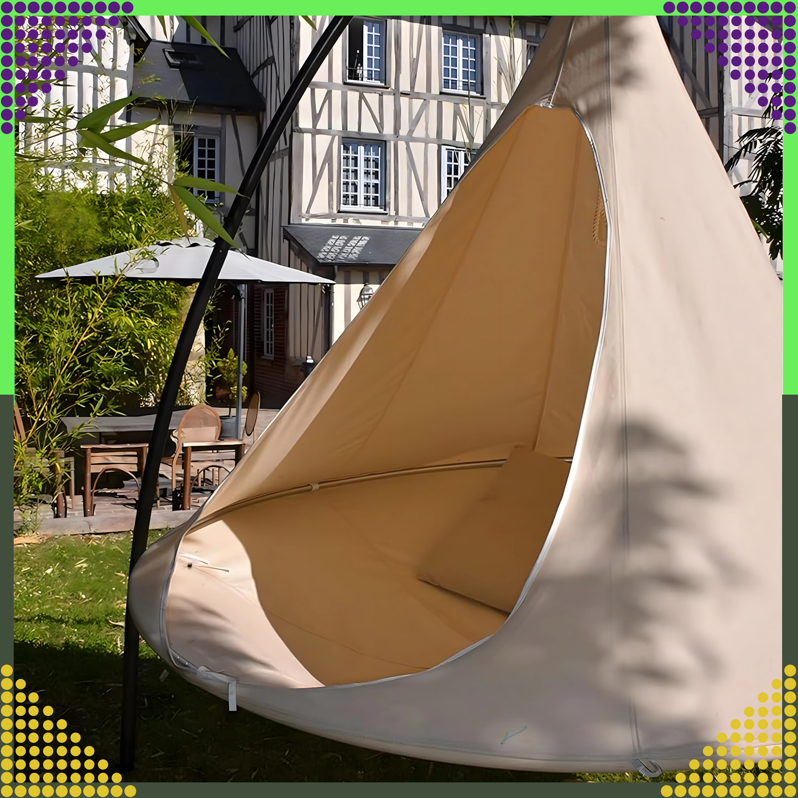 Genießen Sie perfekte Entspannung im hängenden Kokon-Hamak, der stilvolles Design, robuste Konstruktion und maximalen Komfort vereint. Dieser gemütliche „Kokon“ ist ideal für Garten, Terrasse, Balkon und Innenräume und dank der Tragfähigkeit von 150 kg sowohl für Kinder als auch Erwachsene geeignet. Atmungsaktives Material und einfache Pflege machen ihn zum perfekten Rückzugsort für das ganze Jahr.