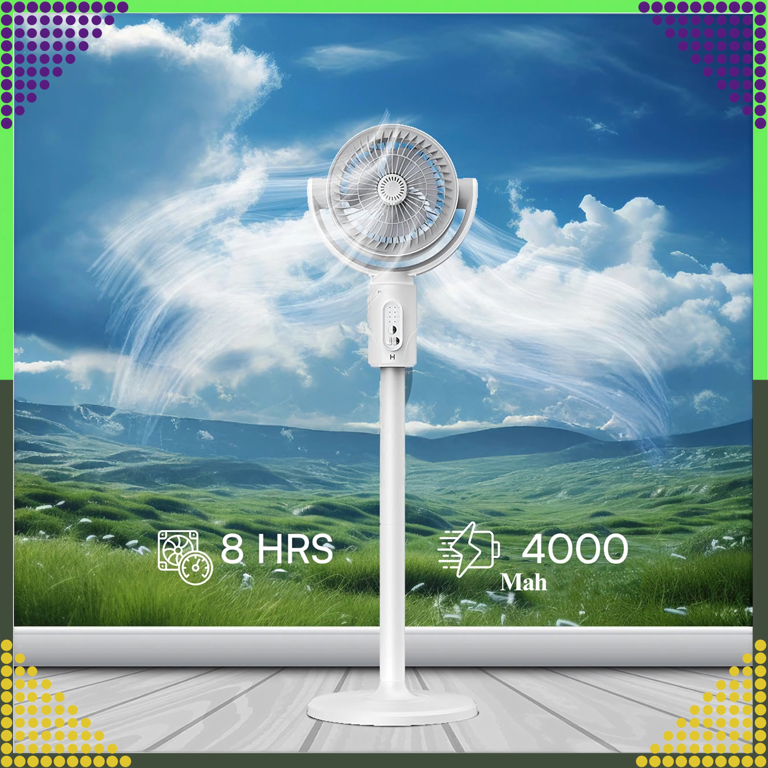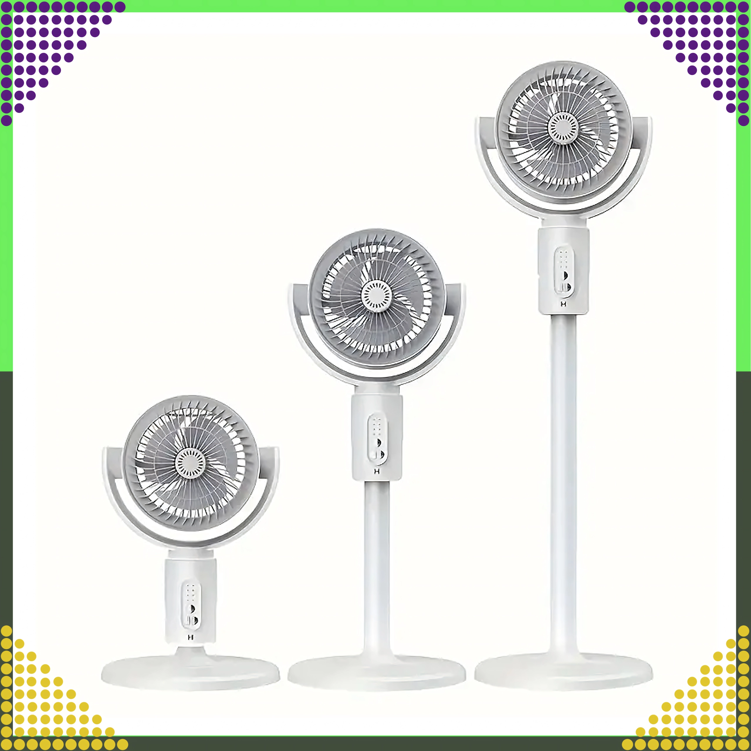 Genießen Sie frische Luft zu Hause, im Büro und auf der Terrasse – dieser kabellose 3-in-1-Ventilator bietet Fernbedienung, höhenverstellbares Design und einen Oszillationsmodus für gleichmäßige Luftzirkulation. Dank der flexiblen Konstruktion lässt er sich im Handumdrehen vom Tischventilator zum Standventilator umbauen und Sie stellen den idealen Winkel sowie die Intensität des Luftstroms ein.