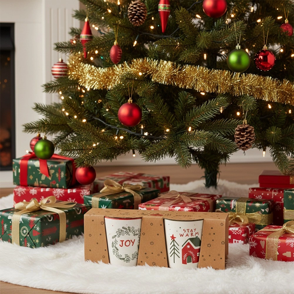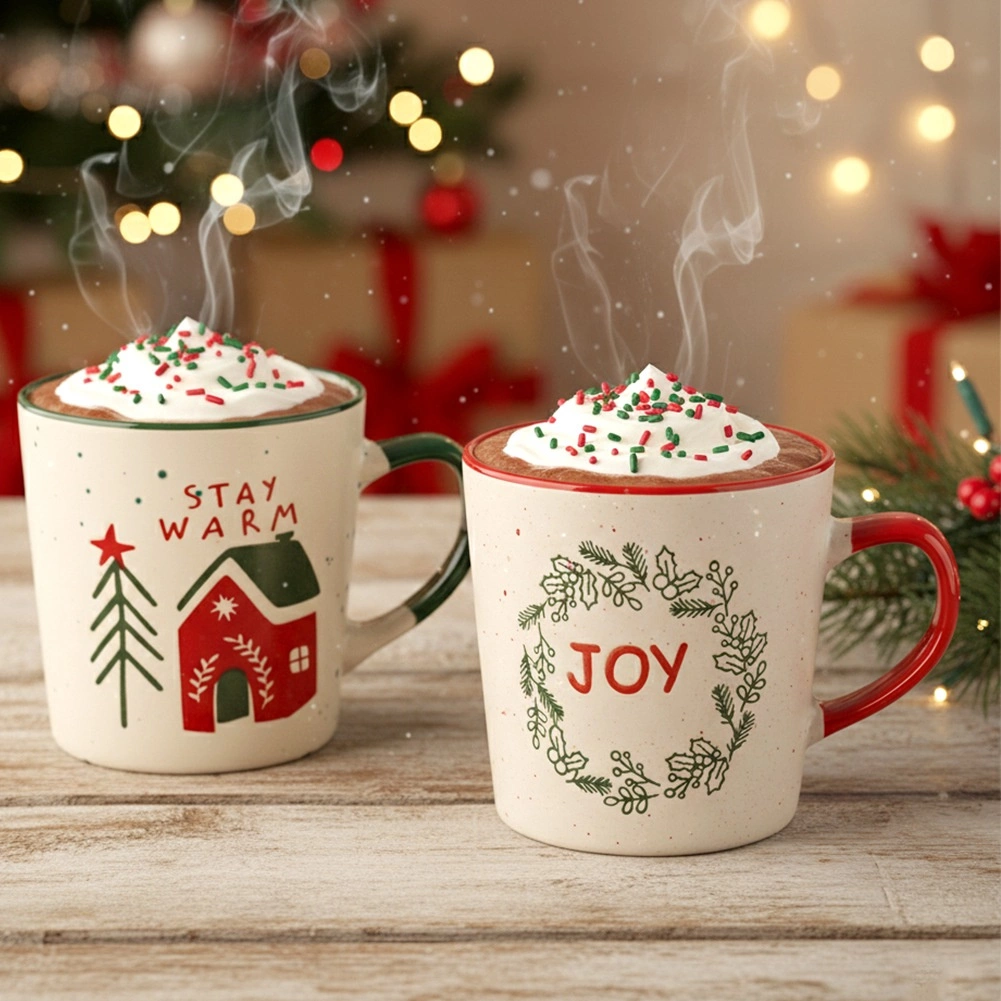 Dezente saisonale Motive und kontrastierende rote und grüne Details verleihen jedem Schluck echte Weihnachtsstimmung.