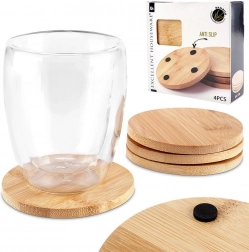 Stilvolle Bambus-Untersetzer sind ein praktisches Accessoire für jedes Zuhause, Büro oder Café. Das natürliche Design lässt sich leicht mit verschiedenem Geschirr und Interieurs kombinieren. Dank des doppelten Vorteils – Schutz der Oberfläche vor Wärme und Kondensation – genießen Sie Kaffee, Tee und gekühlte Getränke ohne Sorge um Ihre Tische.