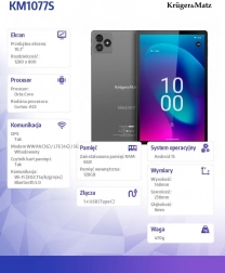 Das Krüger&Matz Eagle 1077S kombiniert ein kompaktes Design mit praktischen Funktionen für den Alltag. Das 10,1"-IPS-Display mit 1280 × 800 Auflösung und 16:10-Format ist perfekt für Videos, Lesen und Web. Der Octa-Core-Prozessor MediaTek MT8768A und 6 GB RAM gewährleisten einen flüssigen App-Betrieb und schnelles Multitasking.