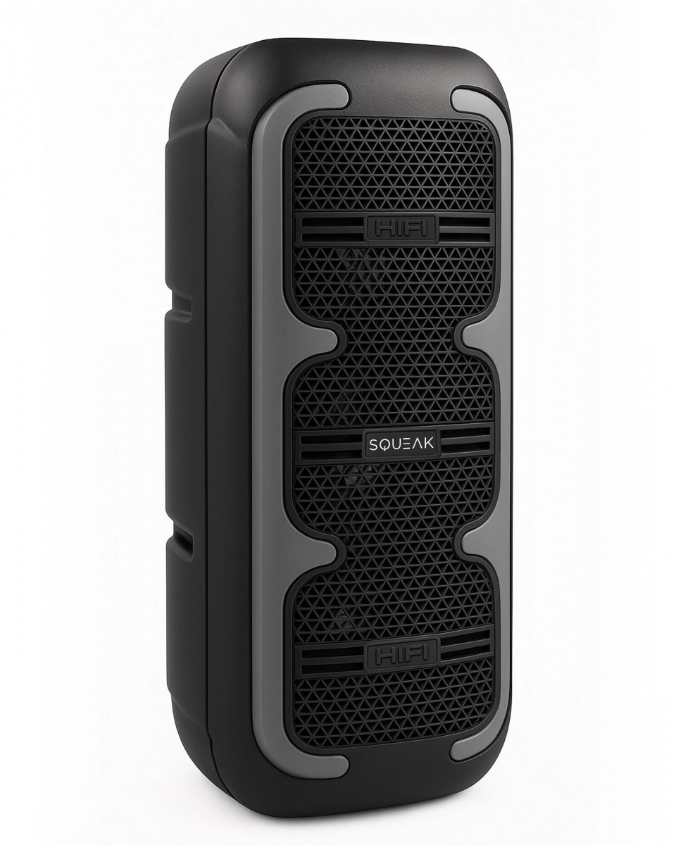 Drei Fronttreiber hinter einem Metallgitter sorgen für klare Höhen und druckvolle Bässe. Ideal für das Hören zuhause wie auch für Outdoor‑Partys.