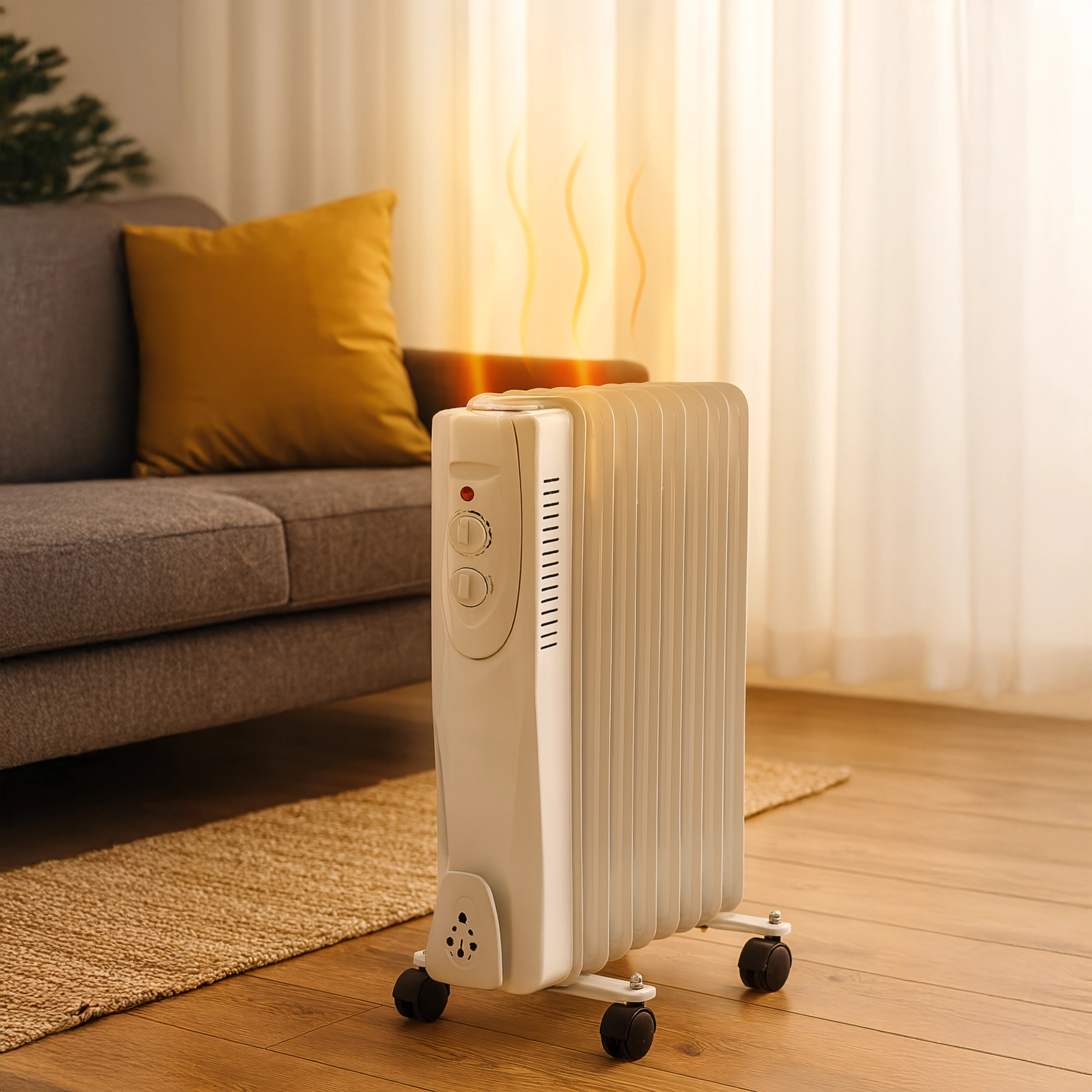 Suchen Sie eine leise und effiziente Zusatzheizung für kalte Tage? Der Ölradiator mit 1500 W Leistung und 7 Rippen erwärmt Ihren Raum zuverlässig ohne Staubaufwirbelung und mit angenehmer Strahlungswärme. Der integrierte Thermostat hält eine stabile Temperatur und hilft, Energie zu sparen.