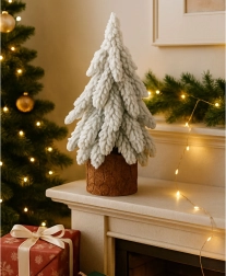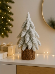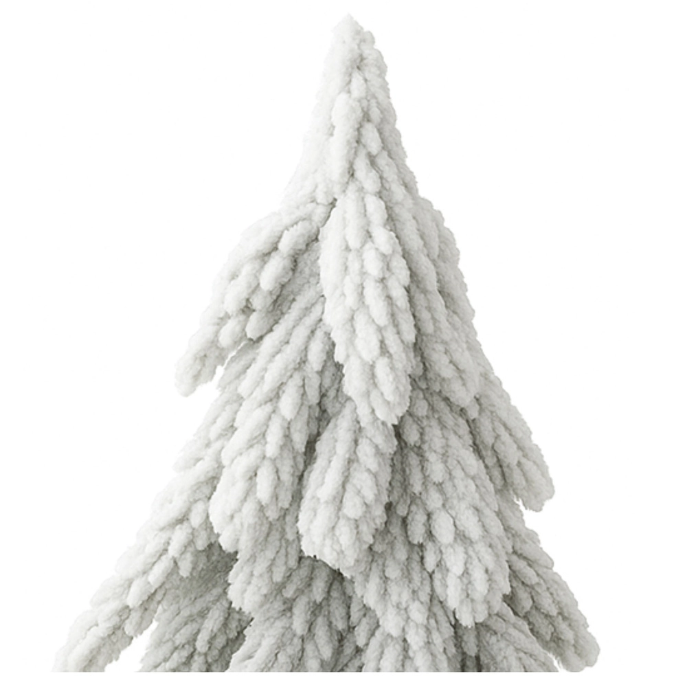 Flauschiges Textil, das verschneite Nadeln imitiert, verleiht dem Bäumchen einen authentischen Winterlook und eine angenehme Haptik.