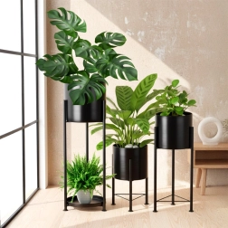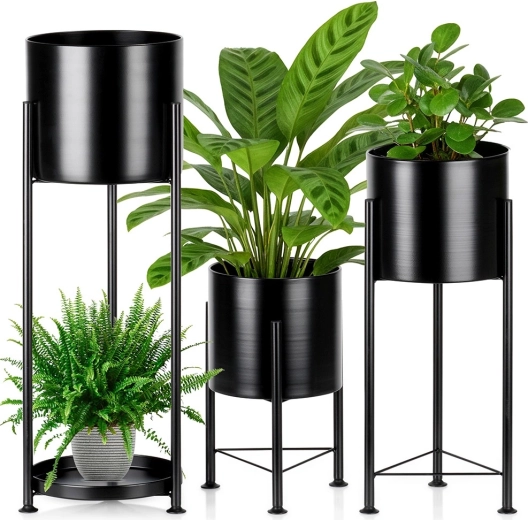 Das Set aus drei Ständern in unterschiedlichen Höhen ermöglicht das Schichten von Pflanzen, verbessert den Lichteinfall und schafft dekorative Arrangements in jedem Raum.