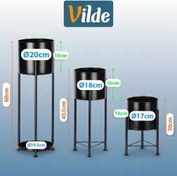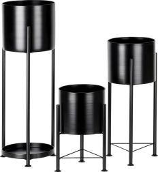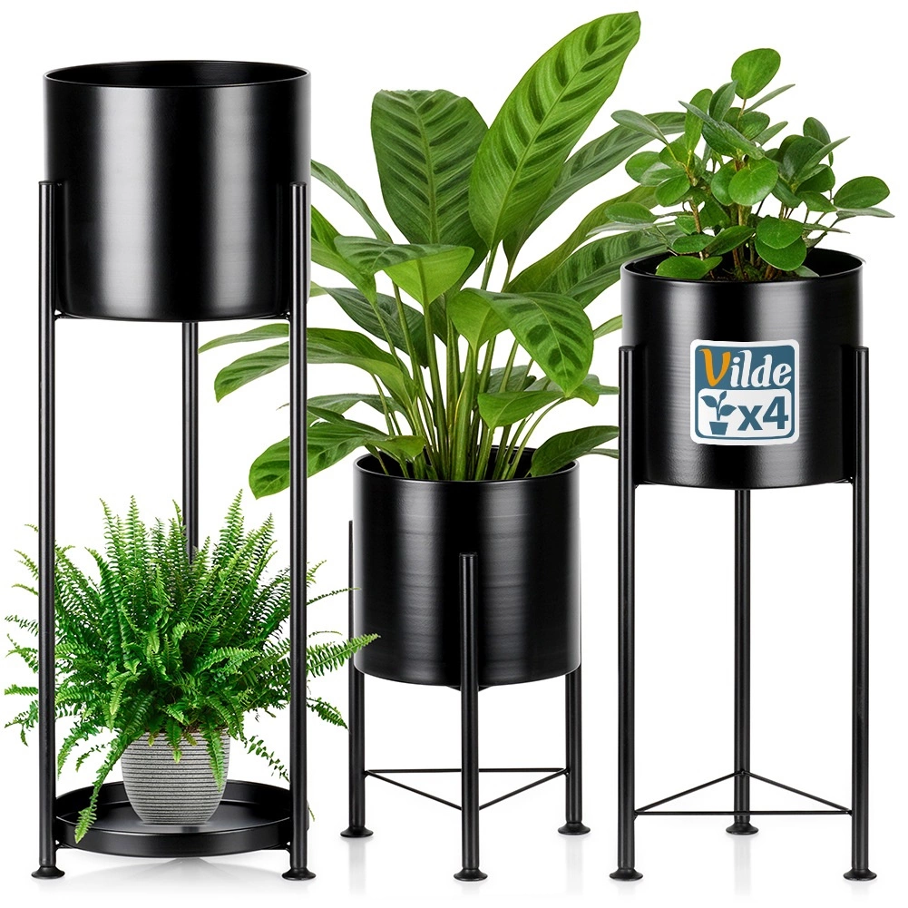 Dank der unterschiedlichen Höhen gestalten Sie harmonische Kompositionen, die den Lichteinfall verbessern und ein gesundes Pflanzenwachstum fördern. Die robuste Metallkonstruktion und die durchdachte Basis sorgen für ausgezeichnete Stabilität. Das zeitlose Schwarz passt sowohl in klassische Interieurs als auch in den industriellen Loft-Stil.