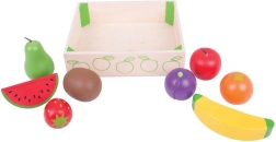In dieser Kiste finden Sie verschiedene Holzfrüchte, wie Bananen, Äpfel, Erdbeeren oder Birnen. Für Kinder ist dies ein tolles Spielzeug, das nicht nur Spaß macht, sondern sie auch über die Bedeutung einer gesunden und ausgewogenen Ernährung aufklärt. Das Spiel ist entworfen, um die Feinmotorik zu fördern und lehrt Kinder, woher ihr Essen kommt und wie es zubereitet wird.