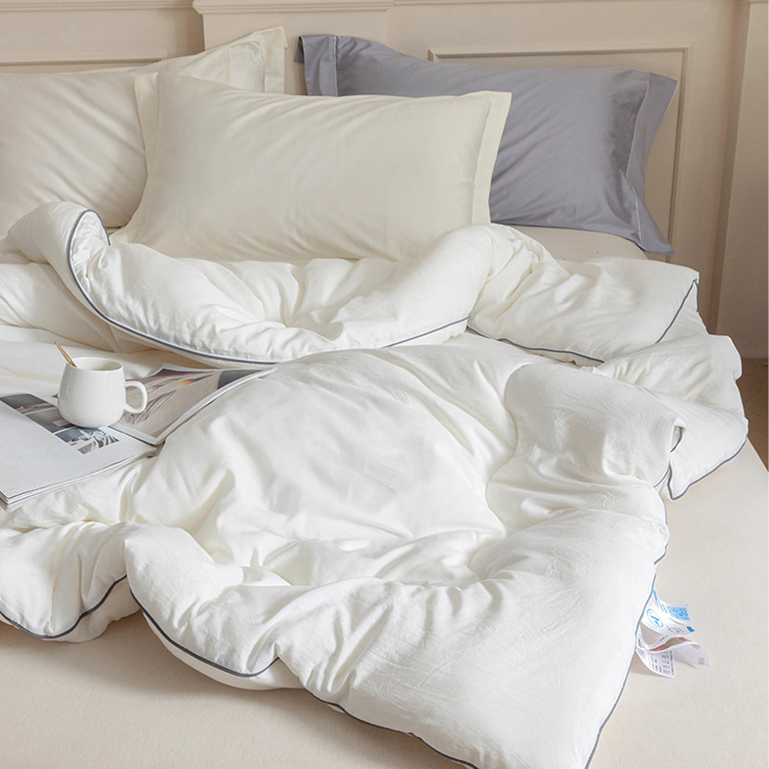 Dank der gesteppten Konstruktion bleibt die Füllung gleichmäßig verteilt und die Decke behält ihr bauschiges Volumen. Die Oberfläche ist weich und angenehm im Griff, was das Gefühl von Komfort und Behaglichkeit im Schlafzimmer verstärkt.