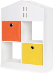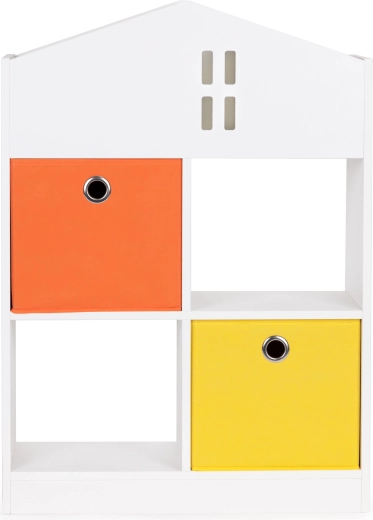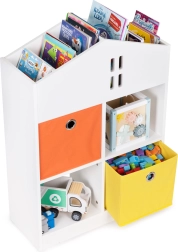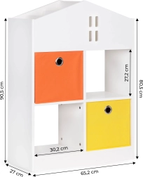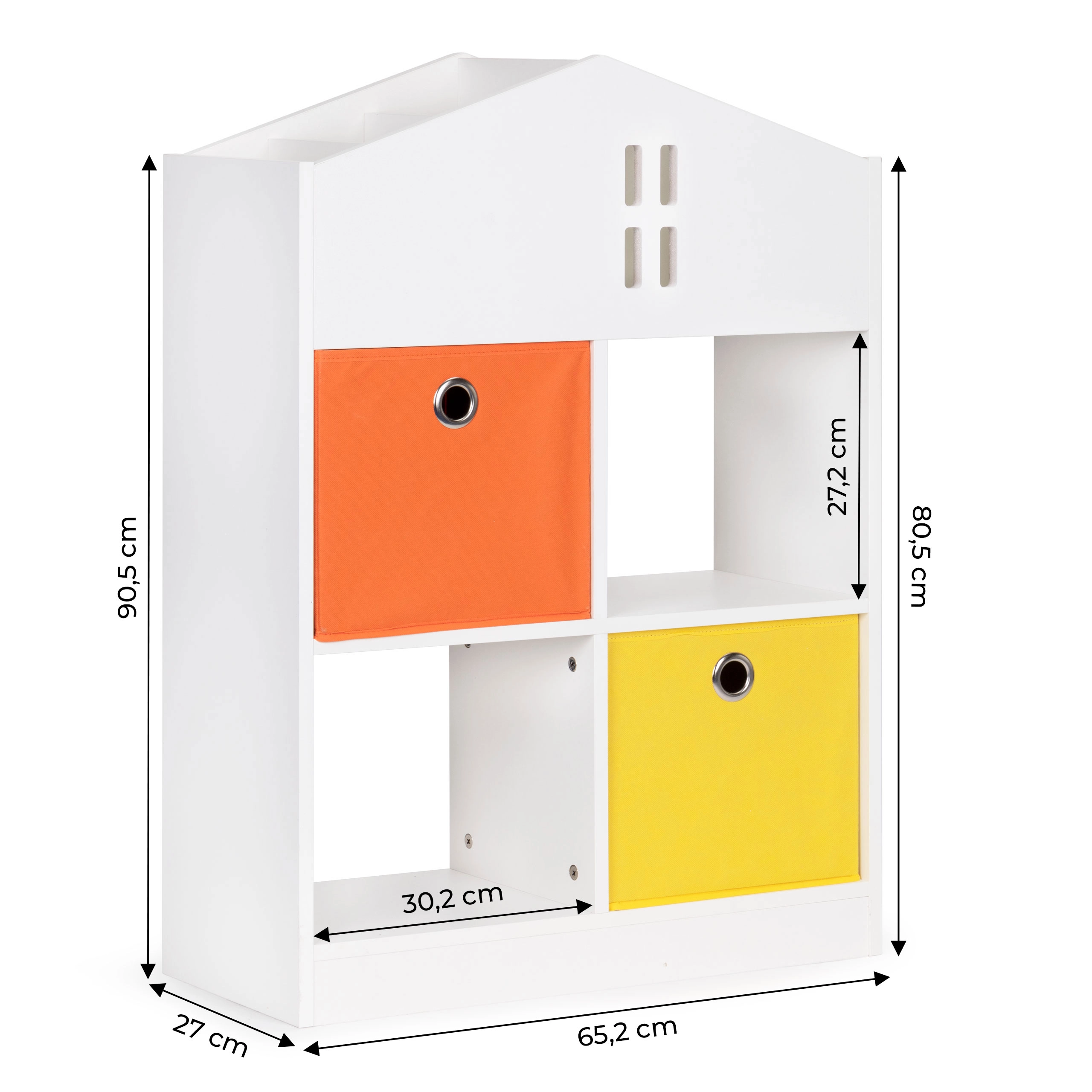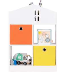 Dieses Kinder-Bücherregal in Hausform ist ideal zur Aufbewahrung von Büchern, Spielzeug und Kleinigkeiten, die Ihr Kind griffbereit haben möchte. Dank der vier geräumigen Regalböden, praktischer Fächer und 2 Stoffkörbe schaffen Sie leicht ein übersichtliches Ordnungssystem. Die rein weiße Farbe passt in jedes Interieur – ins Kinderzimmer, Spielzimmer oder Wartezimmer.