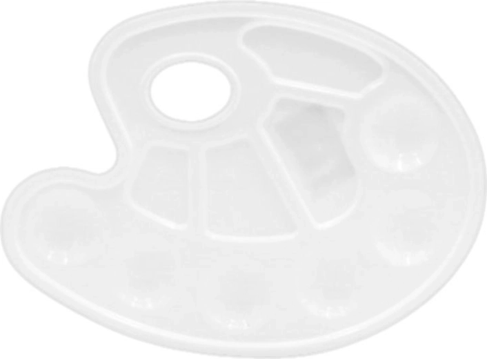 Die Palette besteht aus leichtem Material, liegt gut in der Hand und lässt sich nach der Arbeit einfach abwaschen. Geeignet für Schule, Home-Atelier und Studio.