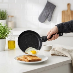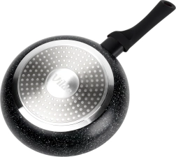 Die stilvolle und robuste Pfanne der Black Line besteht aus hochwertigem Gussaluminium mit einer antihaftenden Granitbeschichtung. Dank der tieferen Form eignet sie sich ideal zum Braten und Schmoren – von Eiern bis zu saftigem Fleisch und knusprigem Gemüse. Die Antihaftoberfläche ermöglicht Kochen mit wenig Öl und erleichtert die Reinigung deutlich.