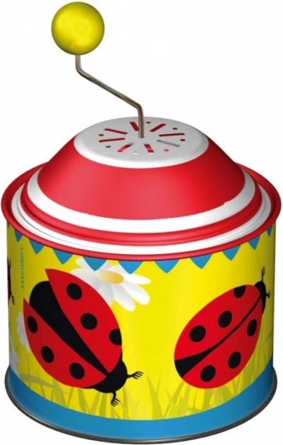 Die niedliche Spieluhr mit Marienkäfermotiv von Lena erfreut Kinder mit einer sanften Melodie – ganz ohne Batterien oder Strom. Einfach an der Kurbel drehen und den angenehmen Klang genießen, der die Fantasie anregt und ruhige Momente ins Kinderzimmer bringt.