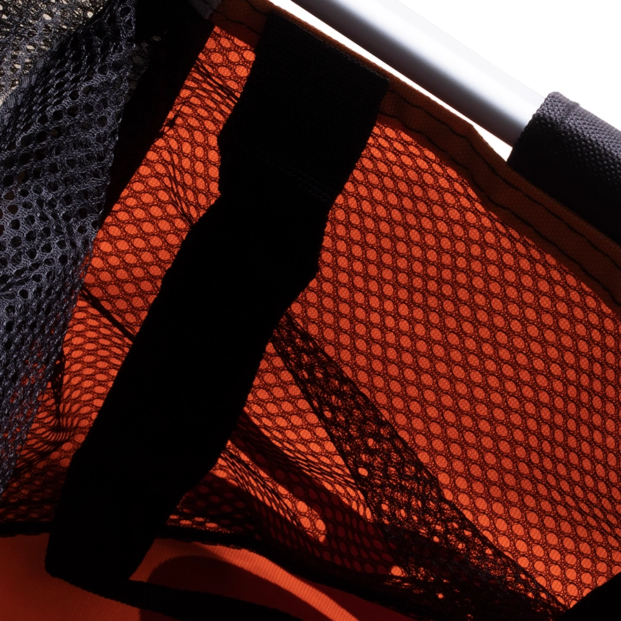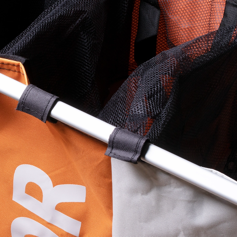 Dank der klappbaren Konstruktion lässt sich der Korb leicht transportieren und verstauen, wenn er gerade nicht benötigt wird. Die Befestigung mit Klettverschluss ermöglicht das schnelle Entnehmen einzelner Beutel – bei Bedarf auch zur Nutzung ohne Rahmen.