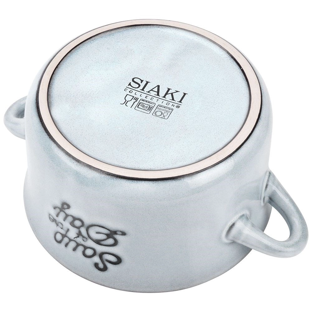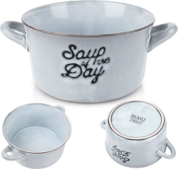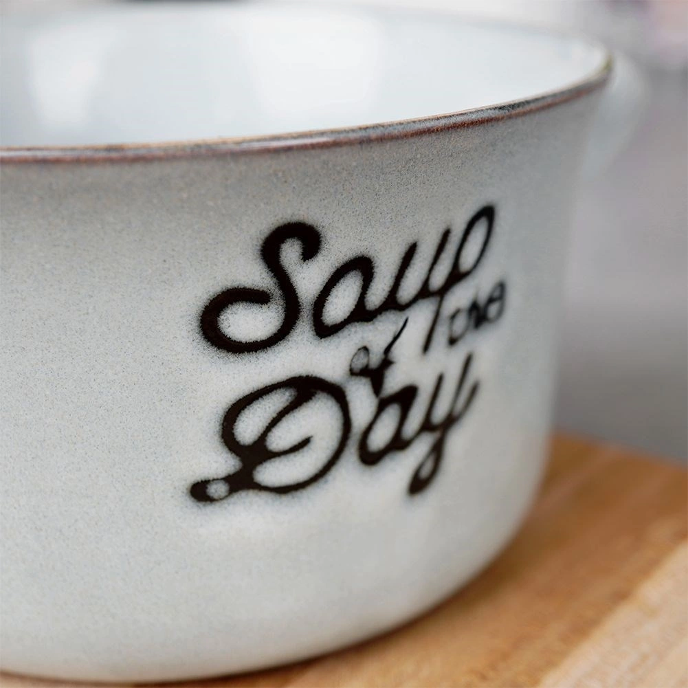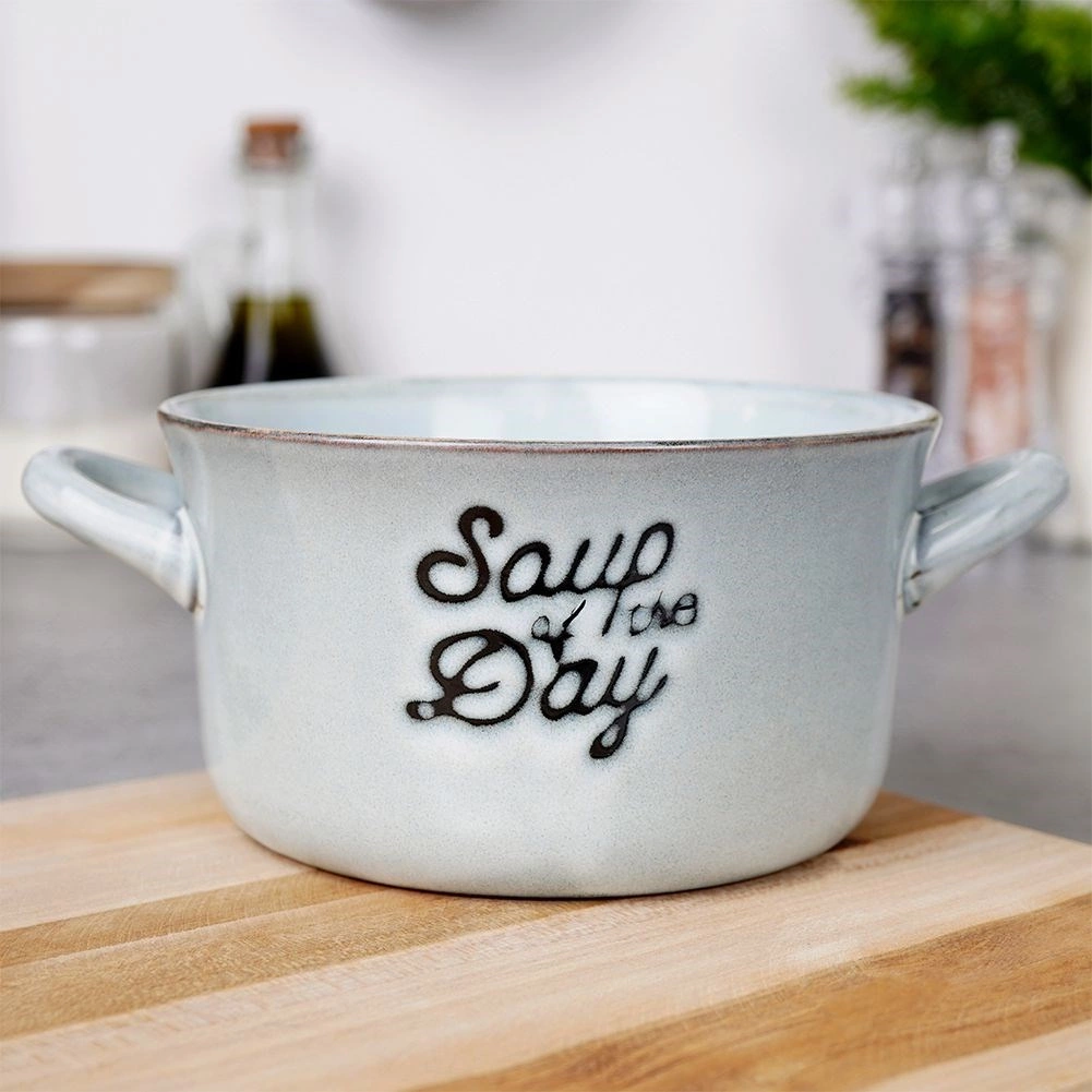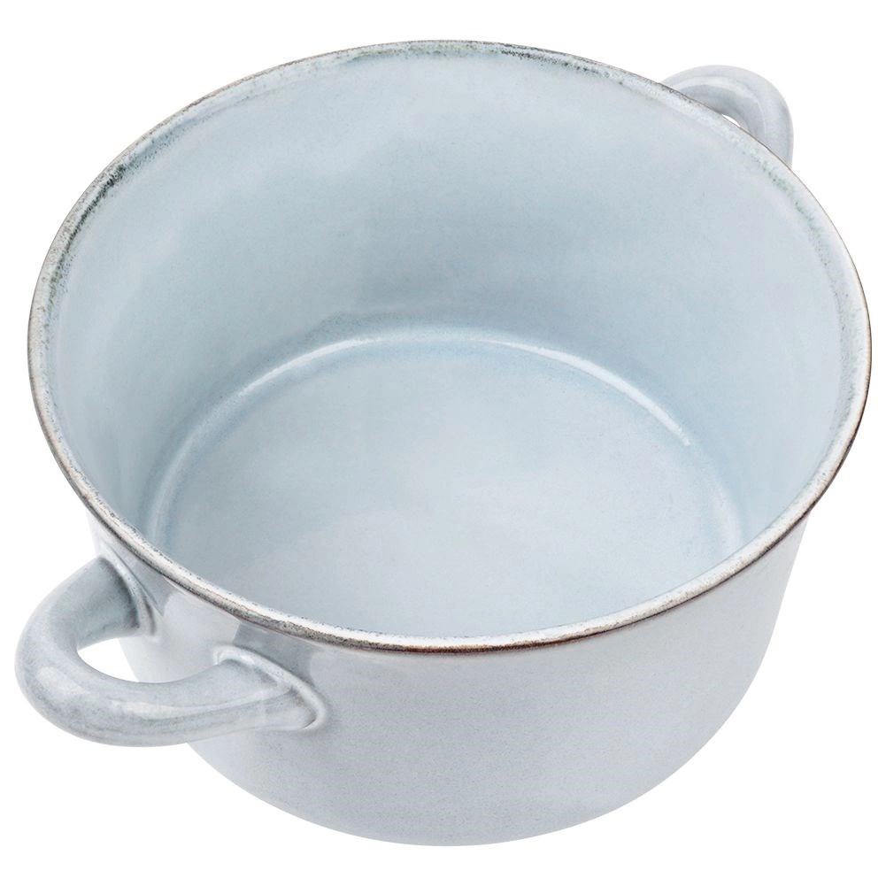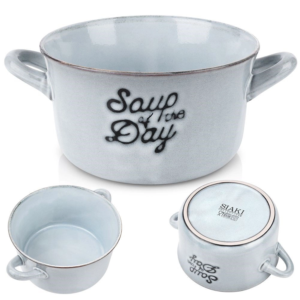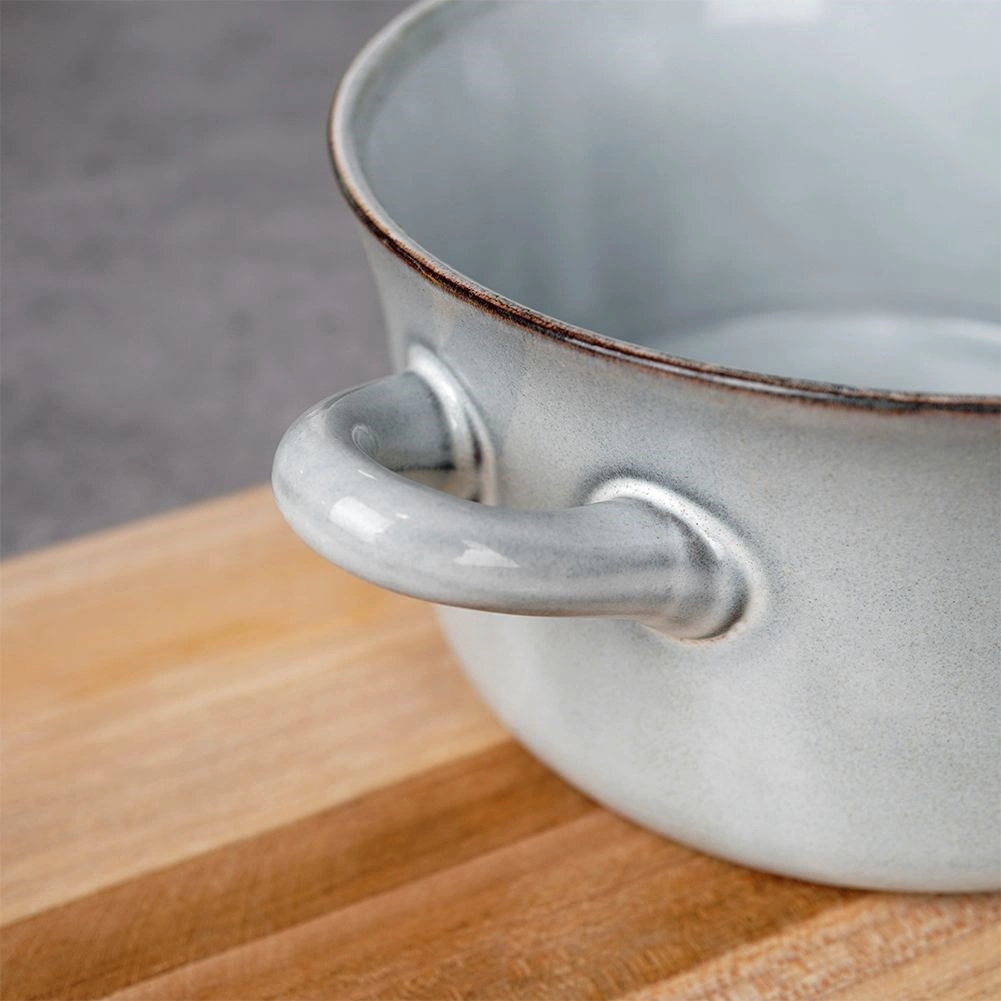 Die robuste Keramikausführung hält die Wärme gut, die breite Öffnung erleichtert das Servieren und zwei bequeme Henkel sorgen für eine sichere Handhabung auch bei heißem Inhalt. Die Schale ist pflegeleicht – spülmaschinengeeignet und mikrowellentauglich.