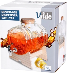Ideal für Limonaden, Säfte, Eistee, aromatisiertes Wasser, Hausweine und Liköre. Die fassartige Form (ca. 31 × 17 × 22,5 cm; mit Ständer ca. 31 × 21 × 29,5 cm) macht auf dem Tisch und auf der Terrasse eine hervorragende Figur. Nicht für heiße Getränke geeignet.