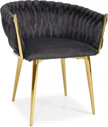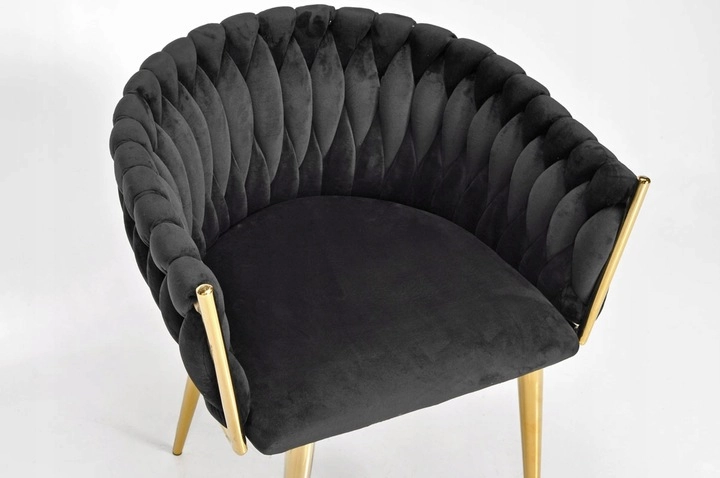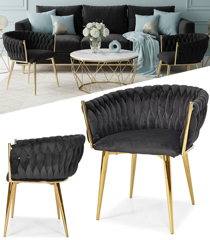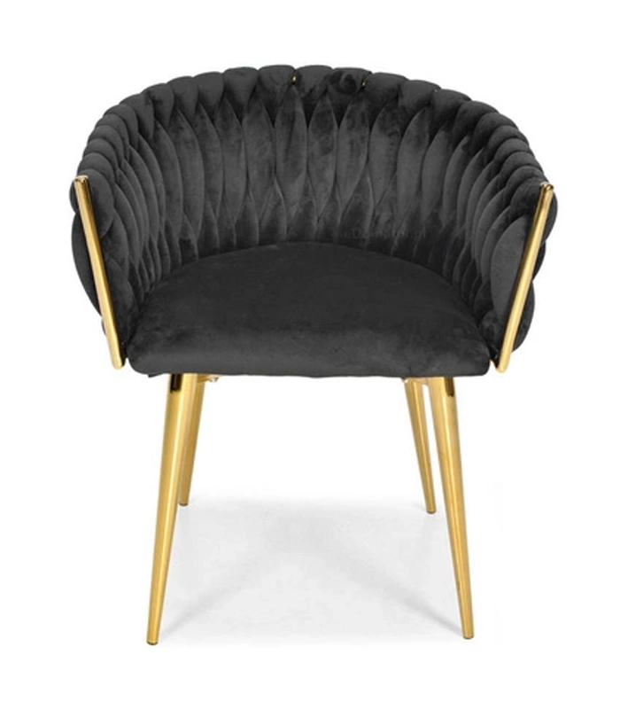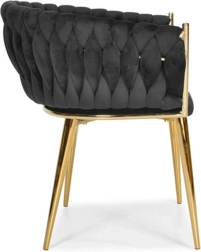 Die aufwendig geflochtene Steppung der Rückenlehne umschmeichelt angenehm den Rücken und sorgt zusammen mit dem weichen, ca. 7 cm starken Sitzpolster für Komfort bei längerem Sitzen. Der Metallrahmen in goldener Ausführung ist zudem robust und stabil mit einer Tragfähigkeit von bis zu 130 kg.