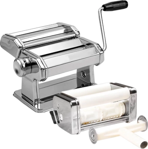 Die Hand-Nudelmaschine Maestro MR-1679R bringt authentische Herstellung frischer Pasta in Ihre Küche. Die robuste Edelstahl-Ausführung gewährleistet Langlebigkeit und Stabilität, während die stufenweise Dickeneinstellung es ermöglicht, die Teigbahn genau nach Rezept abzustimmen – von dünnen Tagliolini bis zu breiten Lasagneblättern.