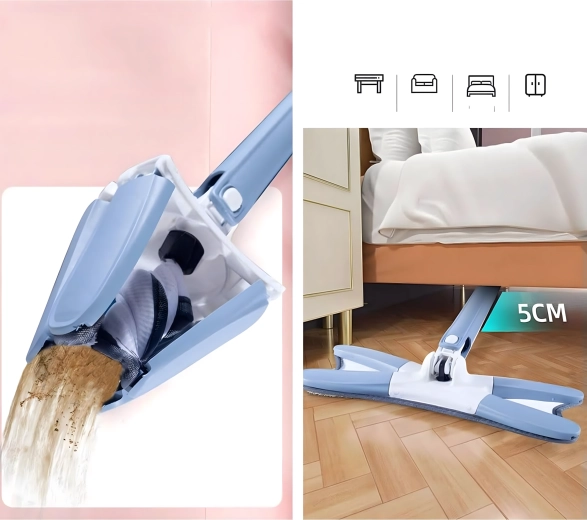 Flachmopp mit klappbarem X-Kopf und Selbstauswring-Mechanismus