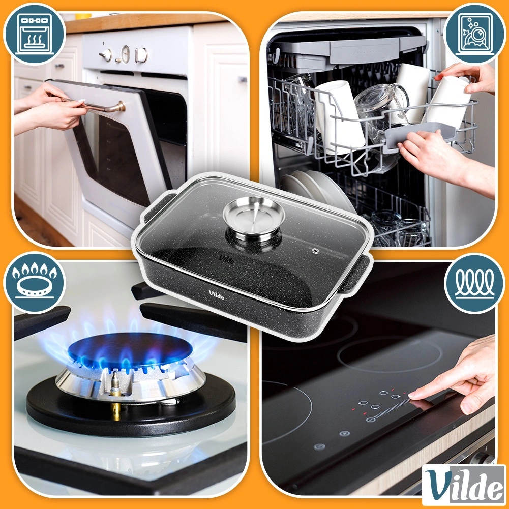 Der Bräter ist ideal für Fleisch, Gemüse, Aufläufe und One-Pot-Gerichte. Dank der Kompatibilität mit Gas, Elektro, Glaskeramik und Induktion sowie der Hitzebeständigkeit bis 250 °C (mit Glasdeckel bis 220 °C) meistert er vielseitiges Kochen vom Herd bis in den Ofen. Robuste Griffe erleichtern die sichere Handhabung, und nach dem Kochen überzeugt die einfache Reinigung in der Spülmaschine.