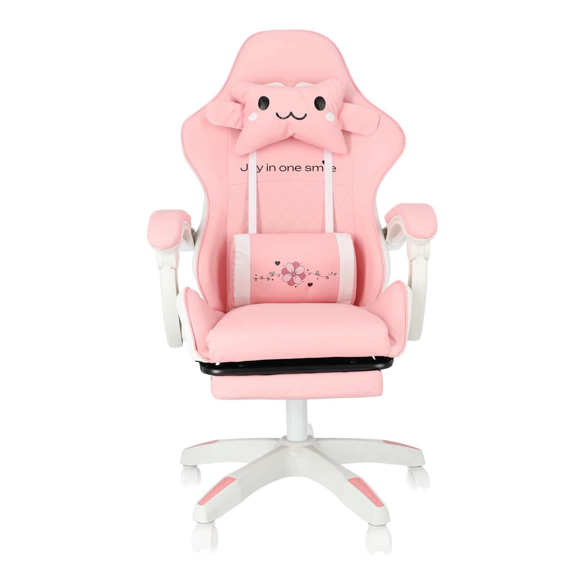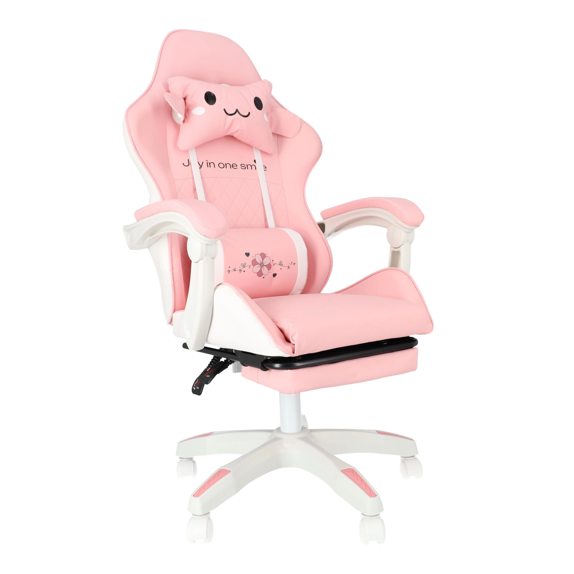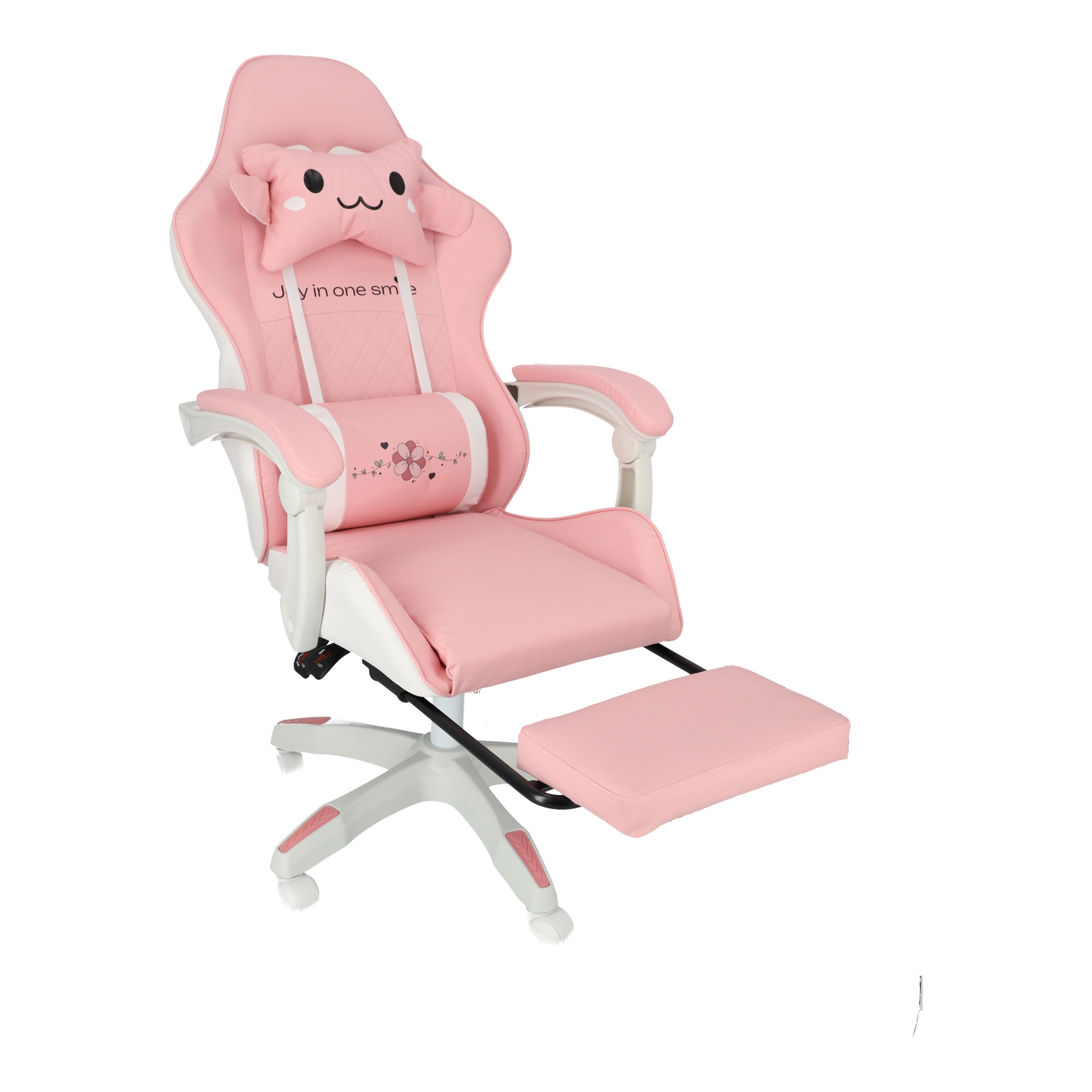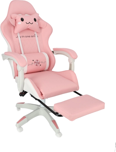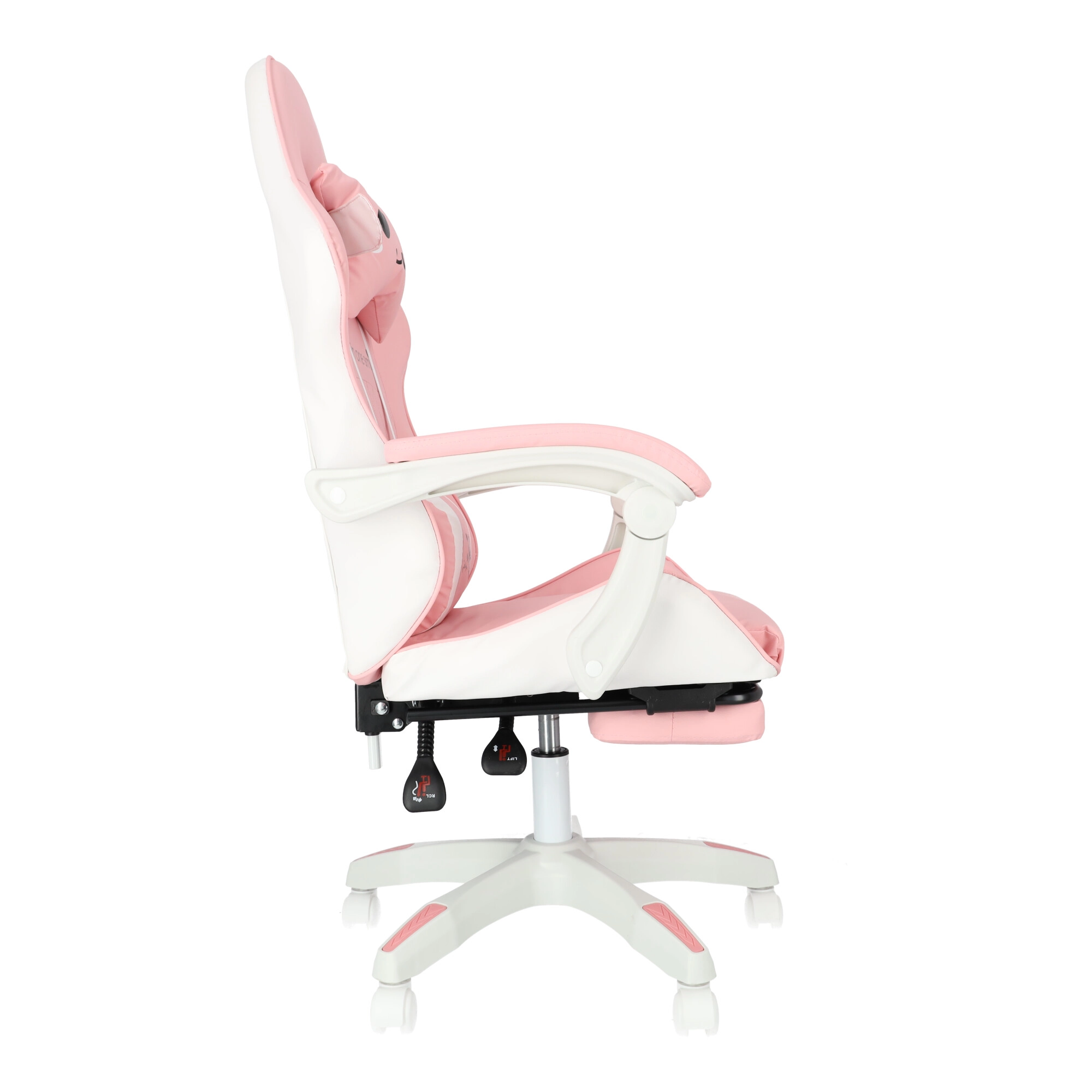 Kinder-Gamingstuhl mit ausziehbarer Fußstütze – rosa, drehbar und bequem