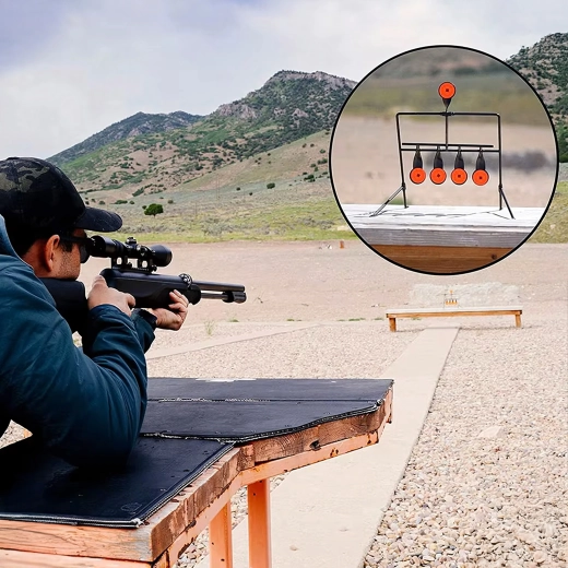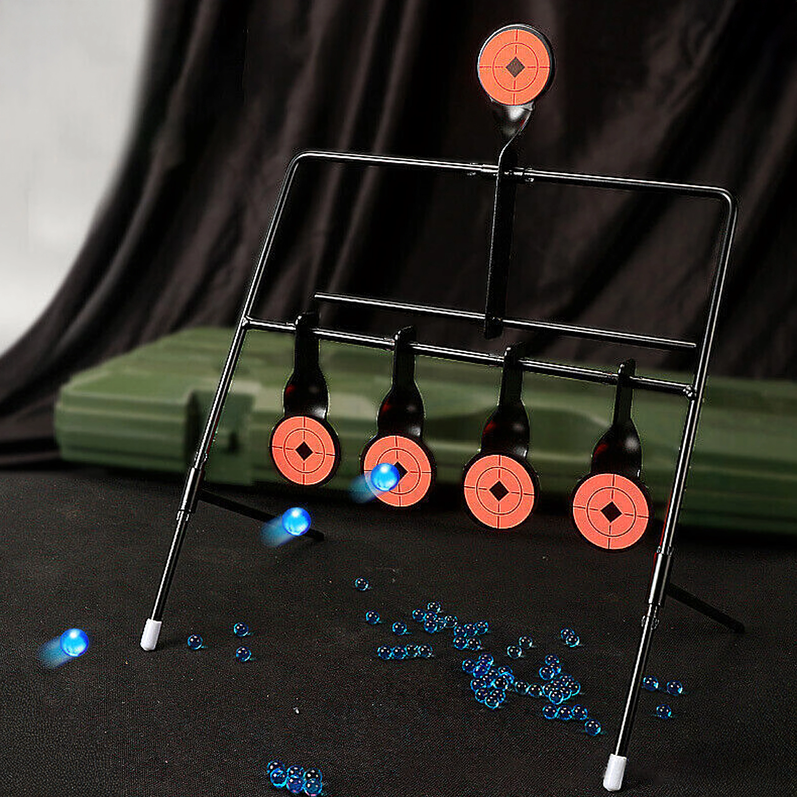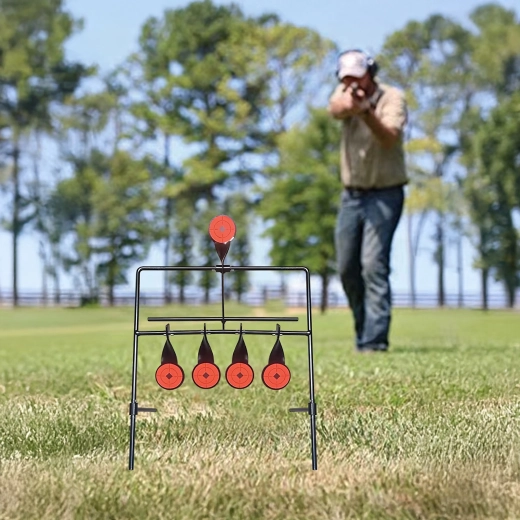 Die widerstandsfähige Metallkonstruktion, die auffälligen orangefarbenen Flächen und der freistehende Rahmen sorgen für gute Sichtbarkeit und Stabilität im Gelände. Geeignet für Präzisionstraining auf dem Schießstand und im Garten, für verschiedene Schießarten (je nach Leistung und Sicherheitsregeln).