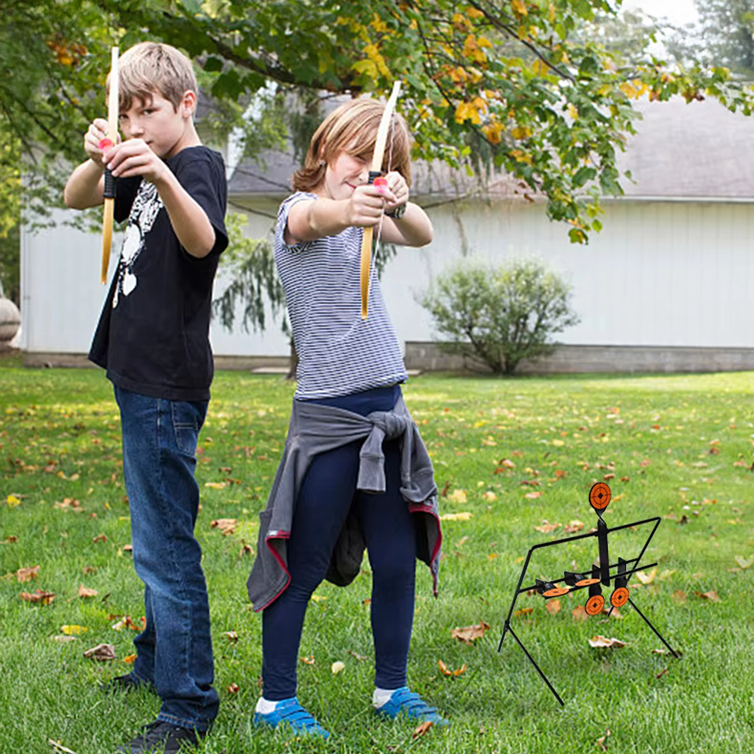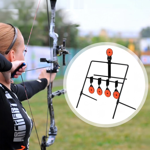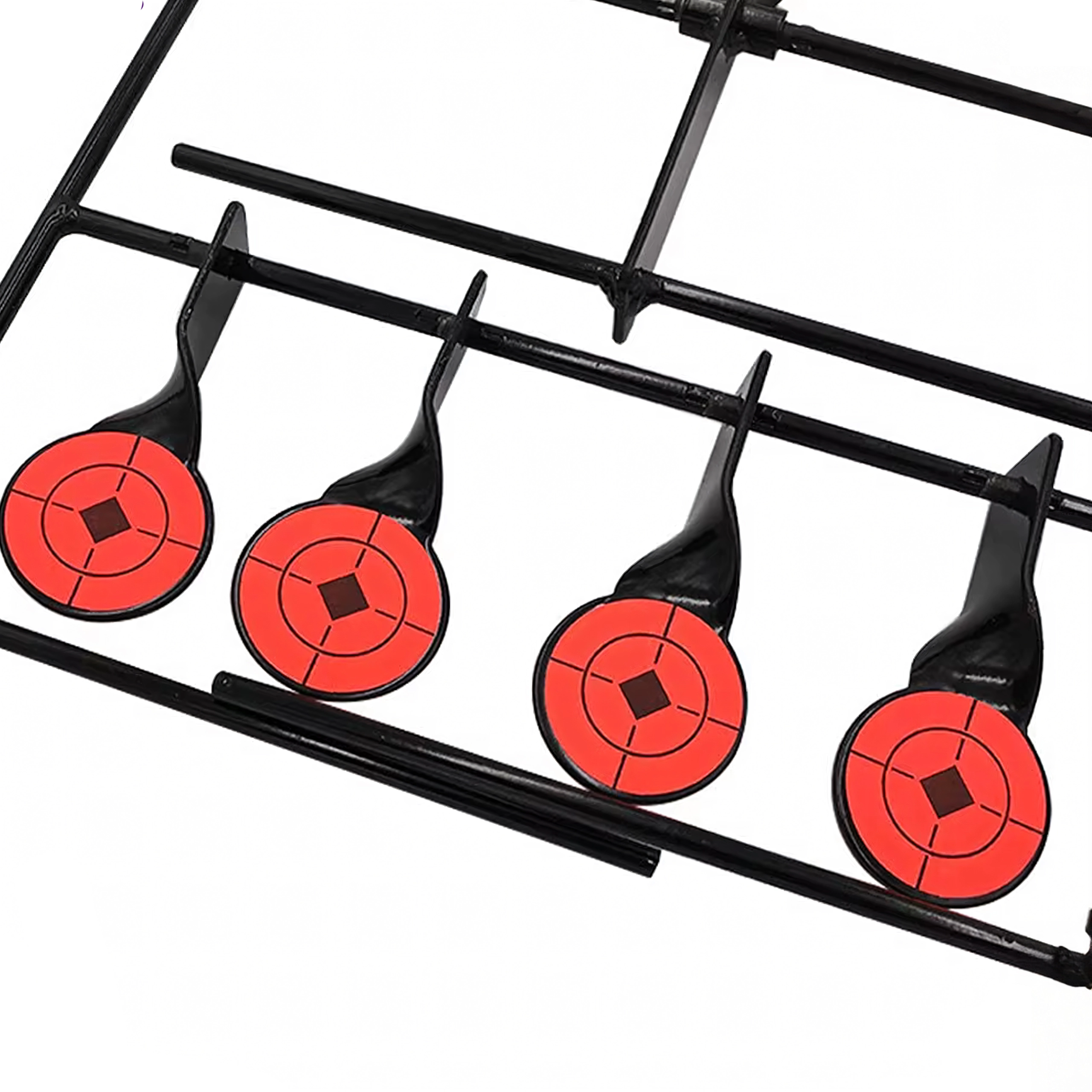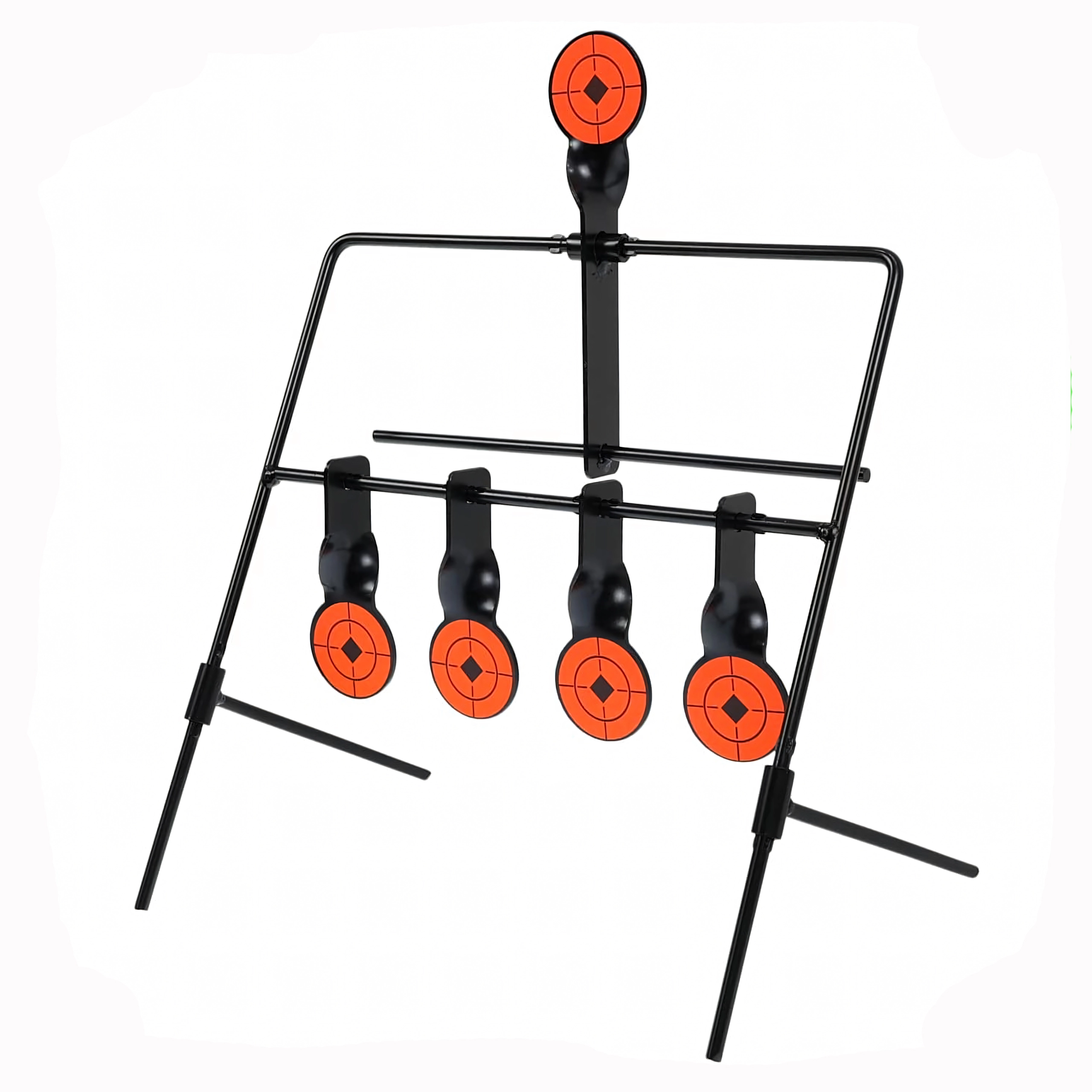 Verbessern Sie Ihr Training mit dem robusten Stahlziel mit fünf unteren reaktiven Paddeln und einem oberen Reset-Ziel. Bei Treffern klappen die Ziele um und liefern sofortiges visuelles Feedback, während der obere Reset eine schnelle Rückstellung in die Ausgangsposition ohne manuellen Eingriff ermöglicht.