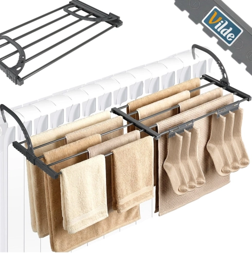 Genießen Sie schnelles und energiesparendes Trocknen dank der Wärme des Heizkörpers. Dieser Wäscheständer aus Metall in elegantem Grau lässt sich einfach an Heizkörpern (max. Tiefe 13 cm) oder am Balkongeländer einhängen. Die ausziehbare Konstruktion passt sich dem verfügbaren Platz und dem aktuellen Bedarf an und ist zusammengeklappt besonders platzsparend.