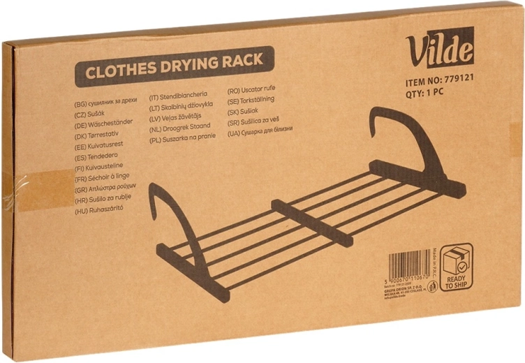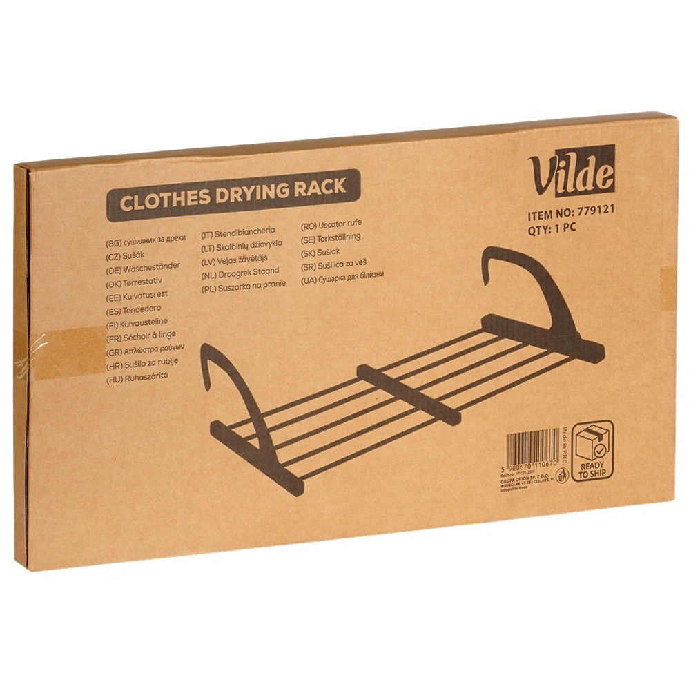 Zehn stabile Stäbe mit Längen von 50 und 62 cm bieten insgesamt 560 cm Trockenfläche, sodass Sie bequem Unterwäsche, T-Shirts und Handtücher trocknen können. Zwei praktische Halter für Kleinteile beschleunigen das Trocknen von Socken oder Unterwäsche ganz ohne Klammern.
