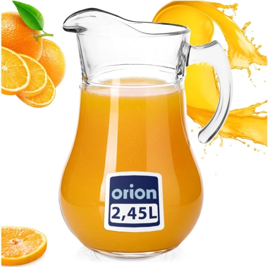 Praktischer Glaskrug mit einem Fassungsvermögen von 2,4 l und Deckel – ideal zum Servieren von Wasser, Säften, Limonade und sogar warmen Getränken. Dank des ergonomischen Griffs und des geformten Ausgusses wird sauber und ohne Kleckern eingeschenkt. Das robuste, dickwandige Glas betont die Farbe der Getränke und sorgt für eine lange Lebensdauer. Der Krug ist spülmaschinengeeignet und perfekt für den täglichen Gebrauch zu Hause sowie für Treffen mit Freunden.