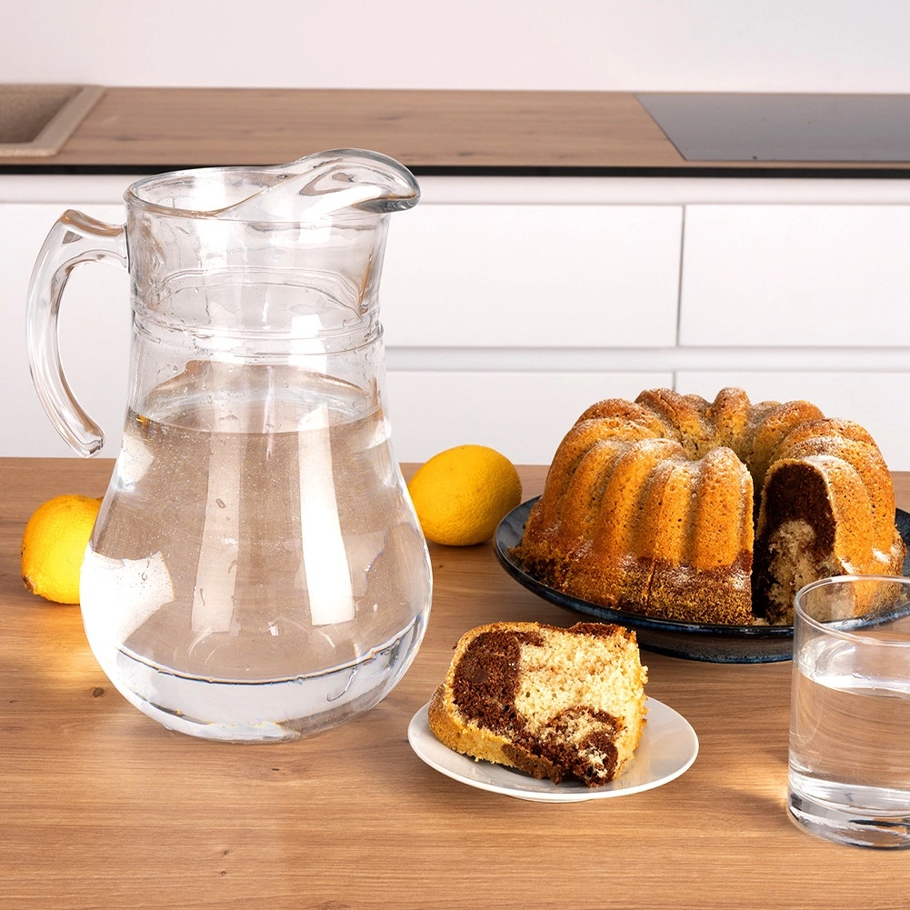 Der Krug besteht aus hochwertigem, dickwandigem Glas, das robust und leicht zu pflegen ist. Er eignet sich für kalte und warme Getränke – von Wasser und Säften über Limonaden bis hin zu Eistee oder Kompott. Nach dem Gebrauch kann er bedenkenlos in die Spülmaschine gegeben werden.