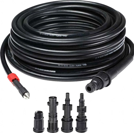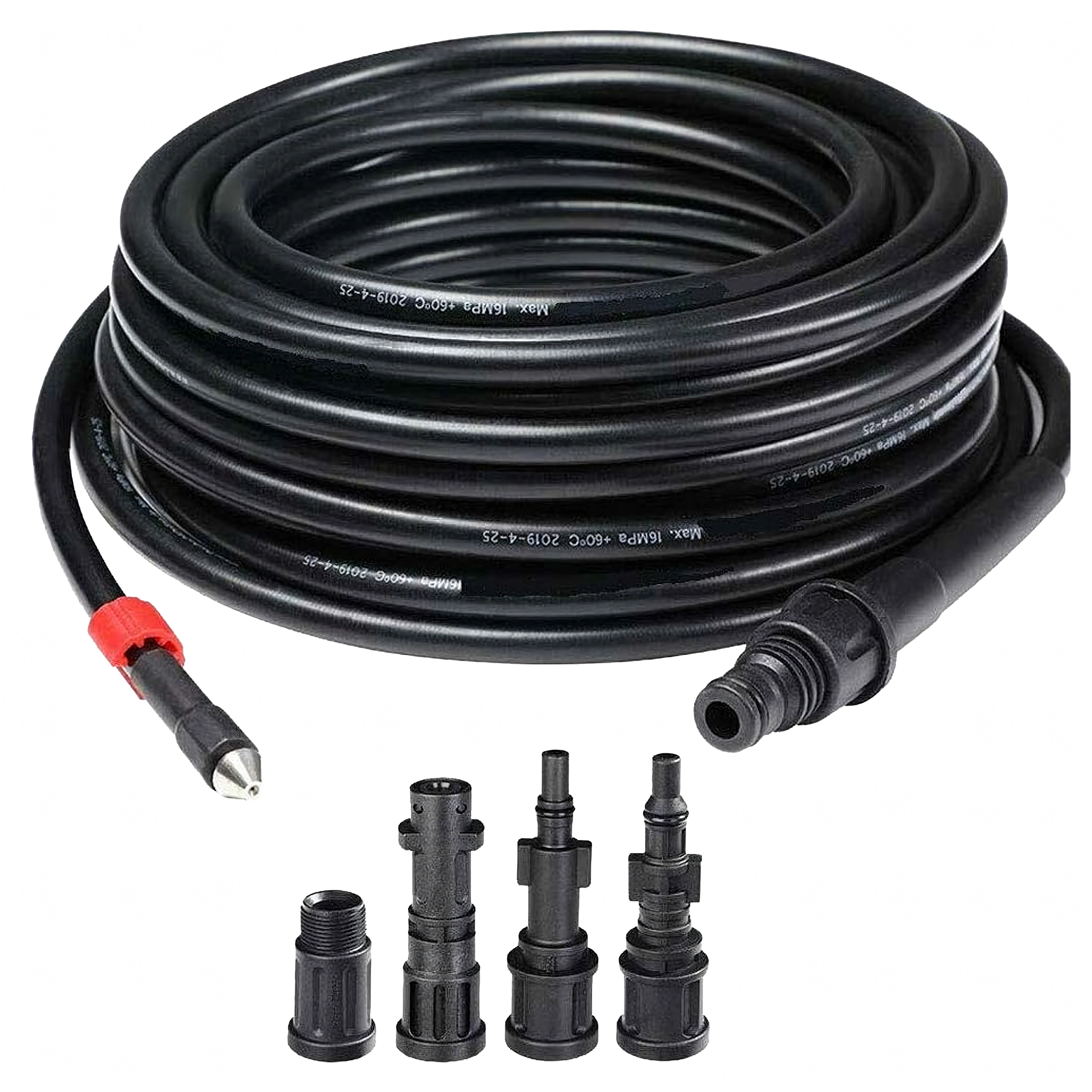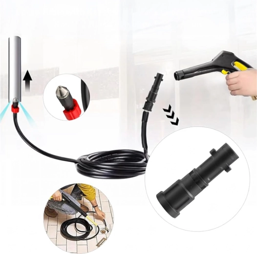 Dank des Adaptersets ist er mit verschiedenen Marken von Hochdruckreinigern kompatibel. Die robuste Schlauchkonstruktion sorgt für eine lange Lebensdauer, eine sichere, leckagefreie Verbindung und einen zuverlässigen Durchfluss. Einfaches Einführen und Führen im Rohr garantiert komfortables Arbeiten ohne teuren Serviceeinsatz.