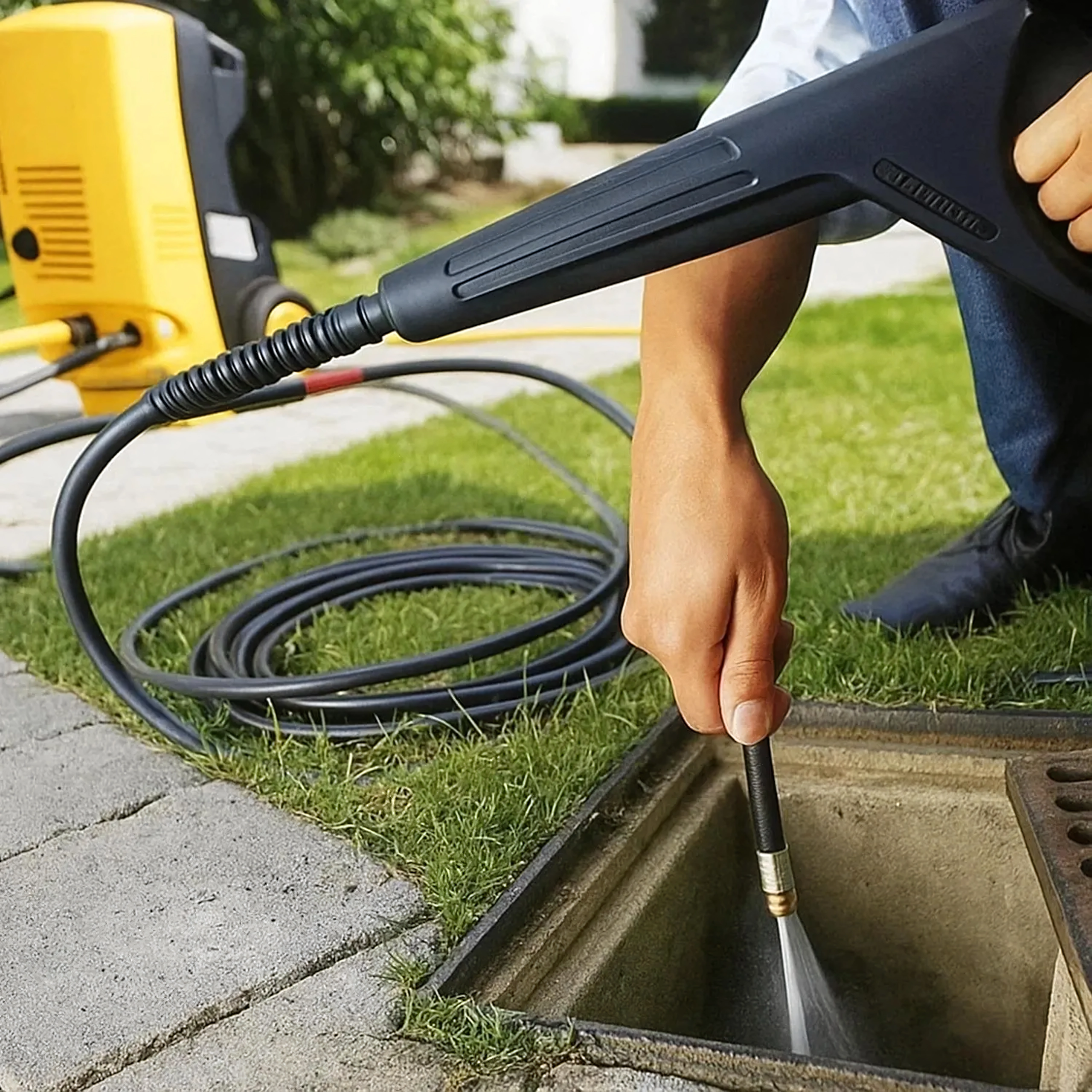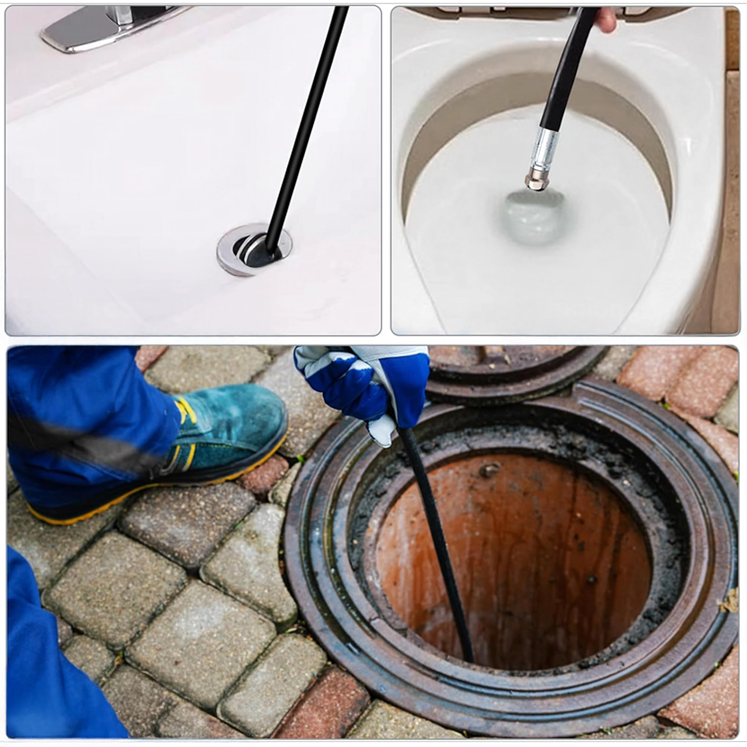 Die Jet-Düse leitet den Wasserstrom direkt in den verstopften Rohrabschnitt, löst Verschmutzungen effektiv auf und spült sie weg. Ideal für Spülen, Duschen und Bodenabläufe.