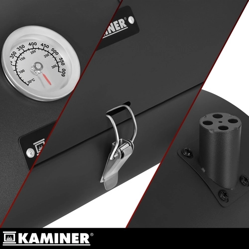 Genießen Sie das Grillen überall – im Garten, auf dem Wochenendgrundstück oder beim Picknick. Der tragbare KAMINER-Grill mit Deckel und Thermometer ermöglicht eine präzise Temperaturüberwachung, ohne den Deckel ständig öffnen zu müssen. Zwei separate Roste vergrößern die Arbeitsfläche und erlauben die Aufteilung in Zonen für unterschiedliche Lebensmittel. Zwei Kohleschalen verteilen die Hitze gleichmäßig und erleichtern die Reinigung der Feuerstelle.