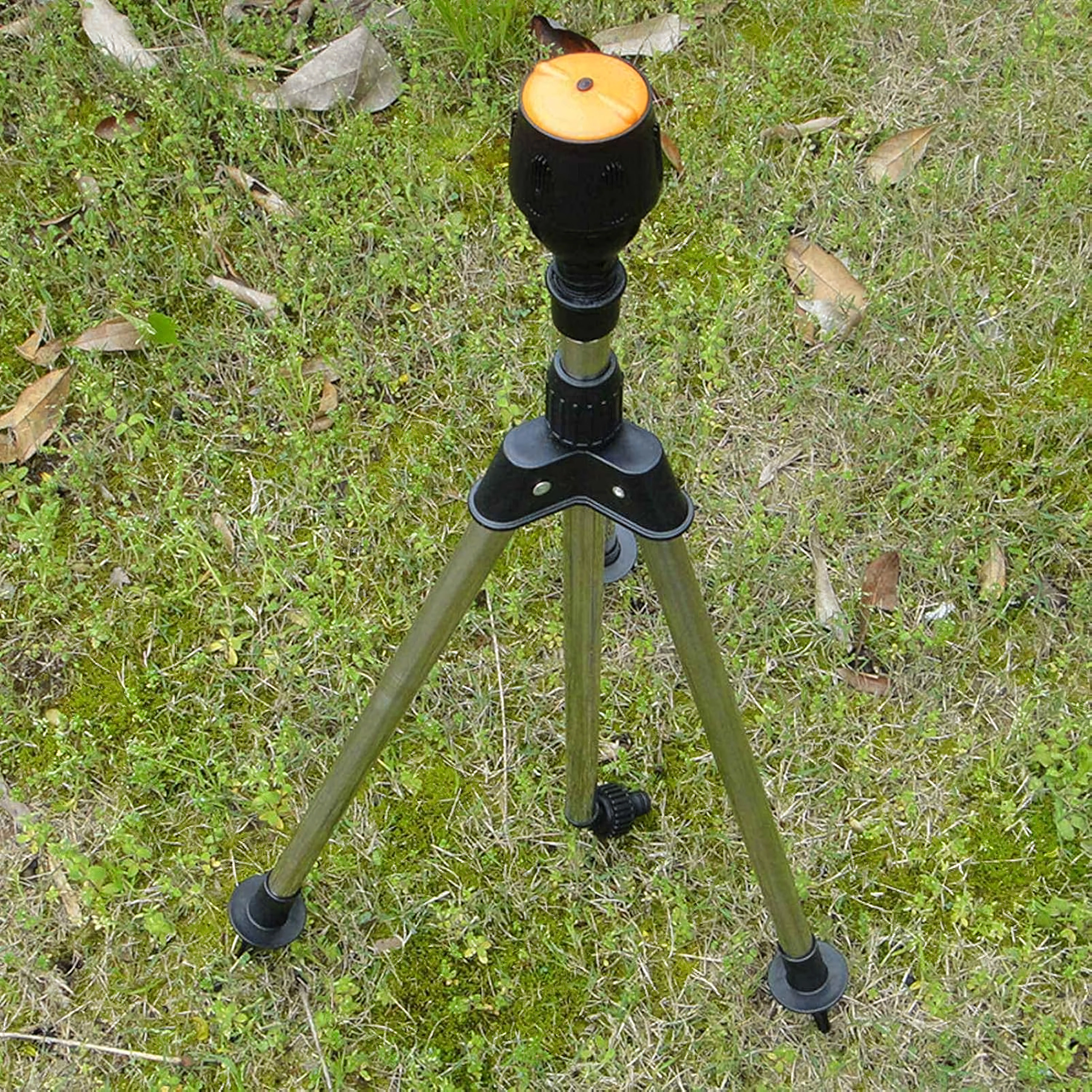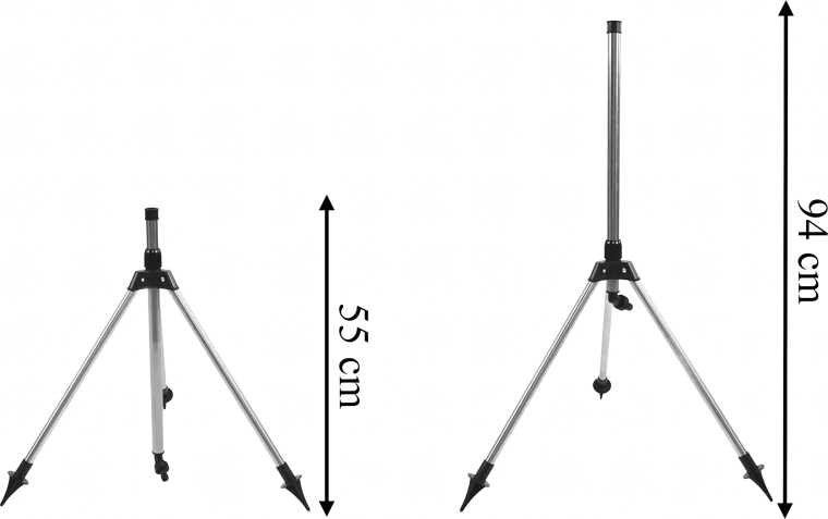 • Stabiles Dreibein-Stativ mit teleskopischen Beinen für sicheren Stand auf dem Rasen