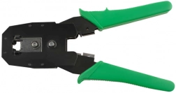 Crimpzange für 8P8C (RJ45), 6P6C (RJ12) und 6P4C (RJ11) mit austauschbaren Klingen für lange Lebensdauer – Schneiden und Abisolieren in einem Werkzeug.