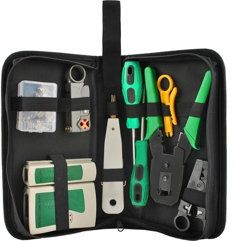Dieses komplette Netzwerkwerkzeug-Set ist ideal für Montage, Wartung und Diagnose von Daten- und Telefonverkabelungen. Verlassen Sie sich auf den universellen Tester für UTP/FTP/STP und RJ11/RJ12, robuste Crimpzangen aus gehärtetem Stahl und präzise Abisolierwerkzeuge für saubere und schnelle Kabelabschlüsse.