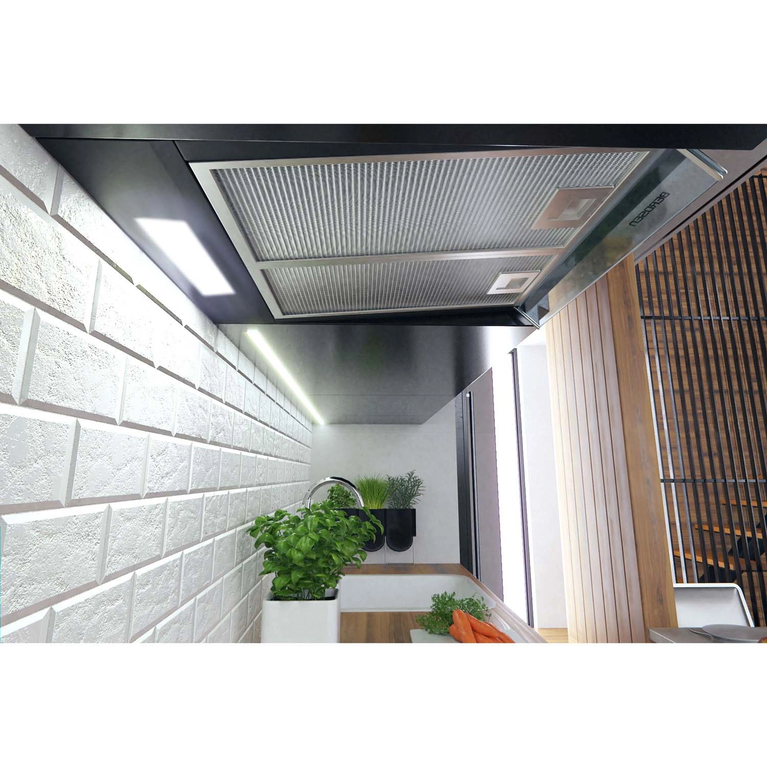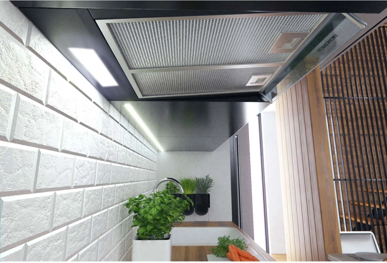 • Max. Leistung 205 m³/h – effiziente Entfernung von Dampf und Gerüchen