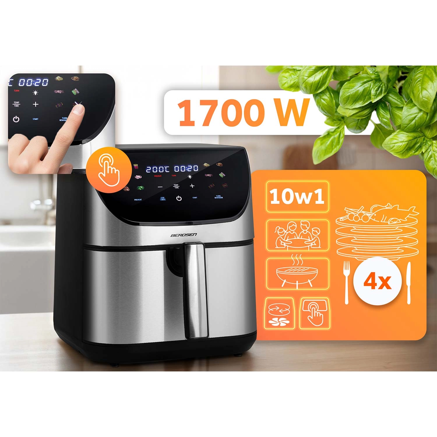 Heißluftfritteuse 8 l BERDSEN 1700 W Edelstahl